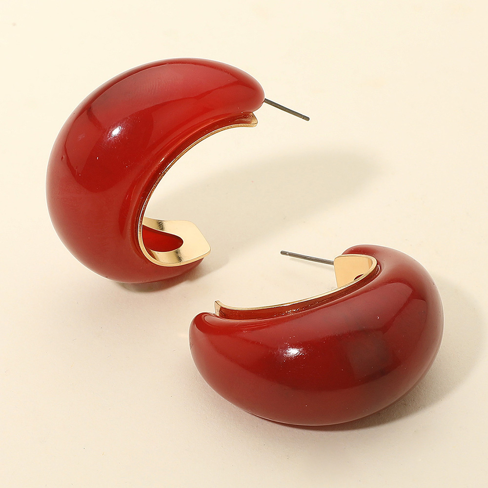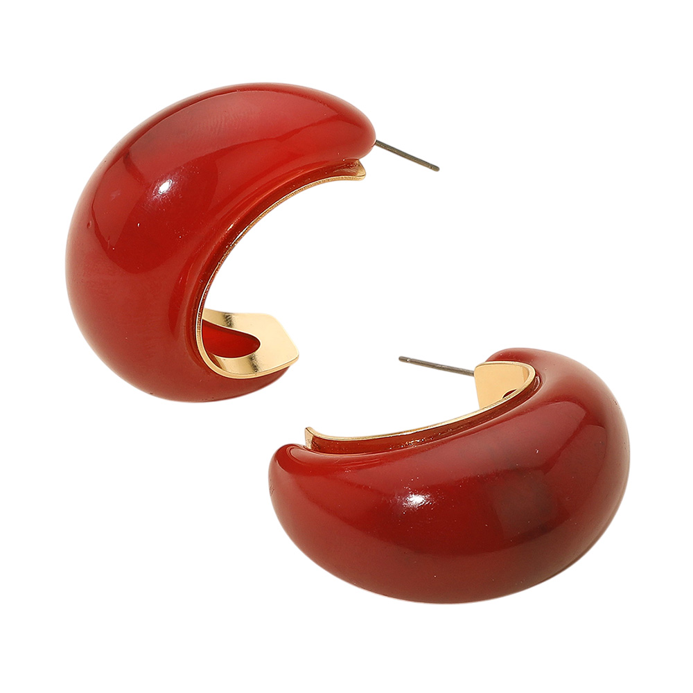 Details • Size : 1.7" X 1.7" • Post Back • Make a bold fashion statement with these chunky resin hoop earrings featuring a glossy marble-like finish. Lightweight yet striking, they’re perfect for elevating casual and evening looks. A versatile accessory that adds texture, shine, and effortless modern style. • Lead and Nickel Compliant