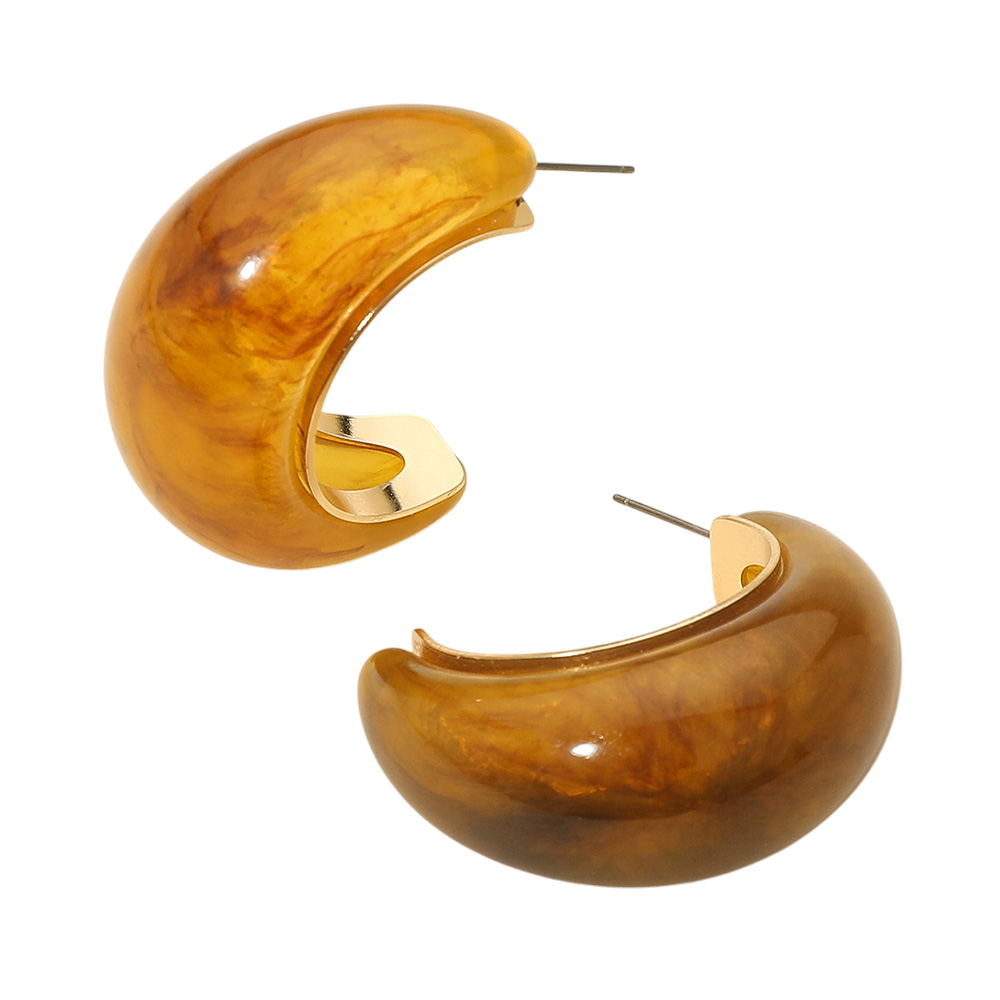 Details • Size : 1.7" X 1.7" • Post Back • Make a bold fashion statement with these chunky resin hoop earrings featuring a glossy marble-like finish. Lightweight yet striking, they’re perfect for elevating casual and evening looks. A versatile accessory that adds texture, shine, and effortless modern style. • Lead and Nickel Compliant