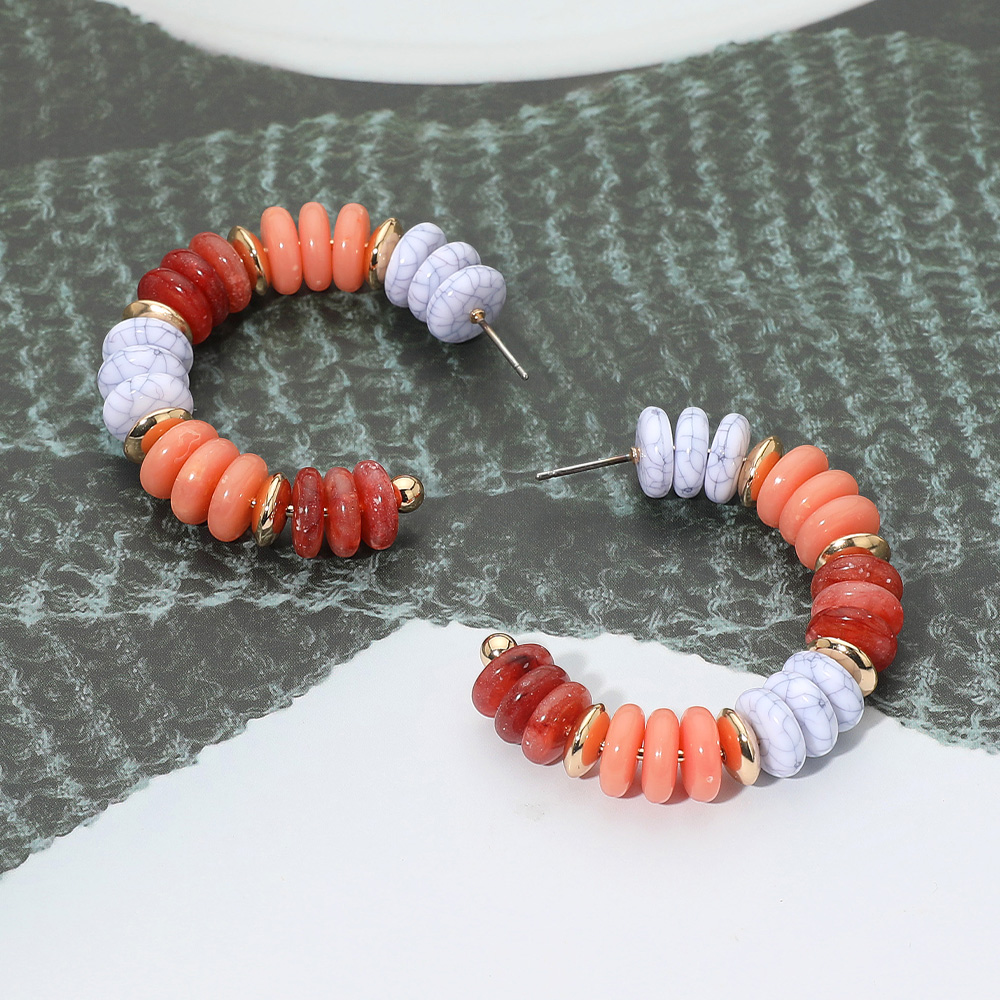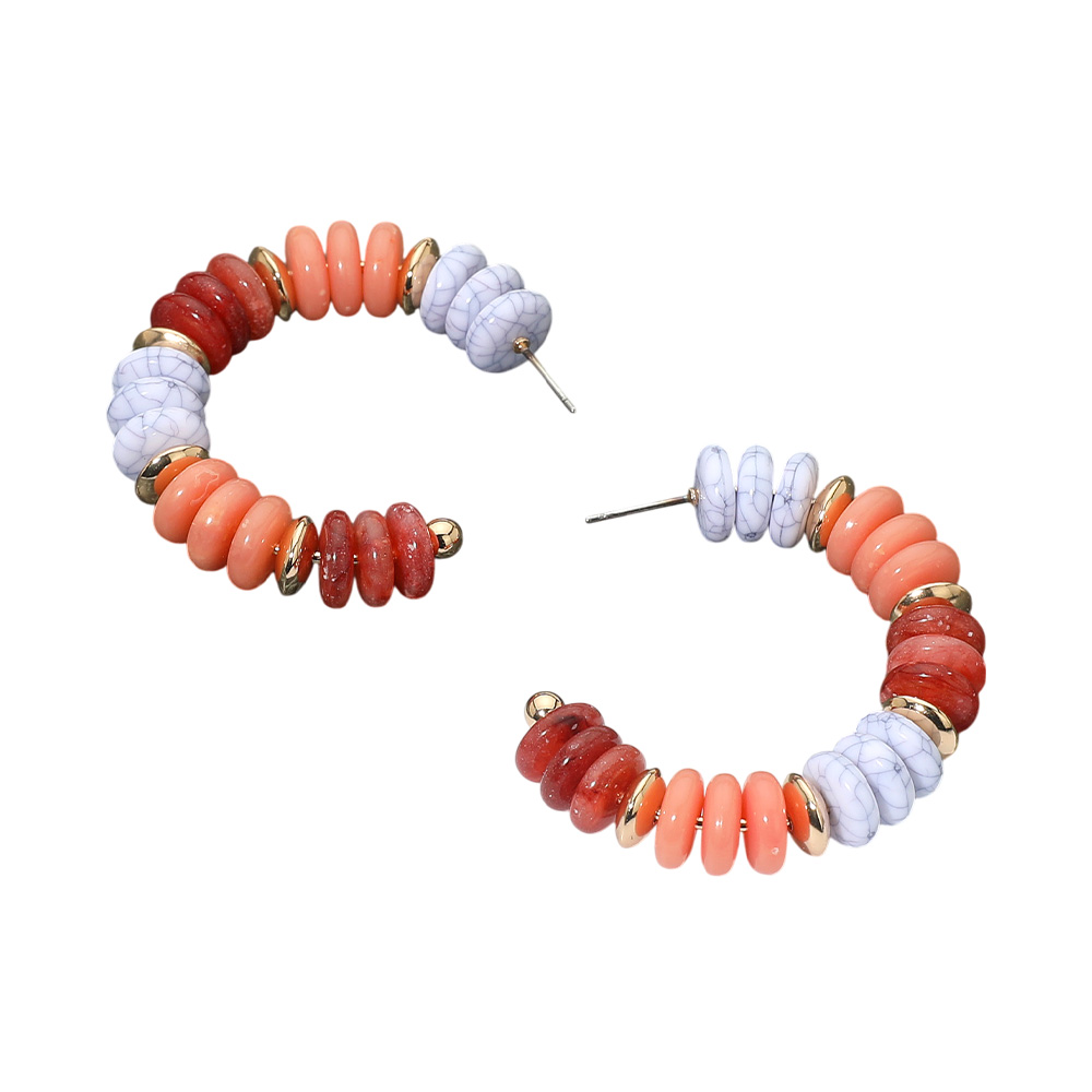 • Make a statement with beaded hoop earrings featuring a mix of smooth round accents for a striking layered look. Their bold and playful arrangement adds artistic flair, perfect for elevating casual outfits or complementing unique fashion styles.