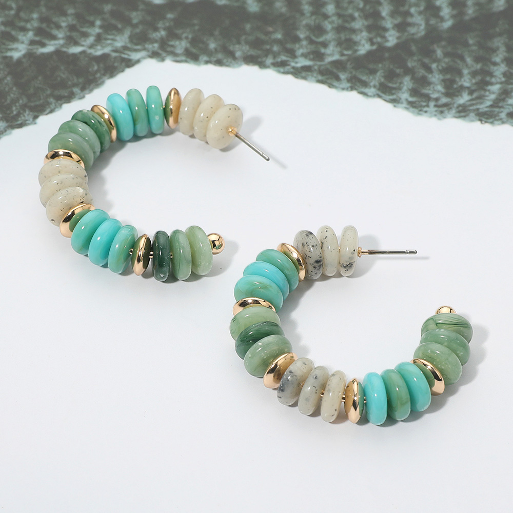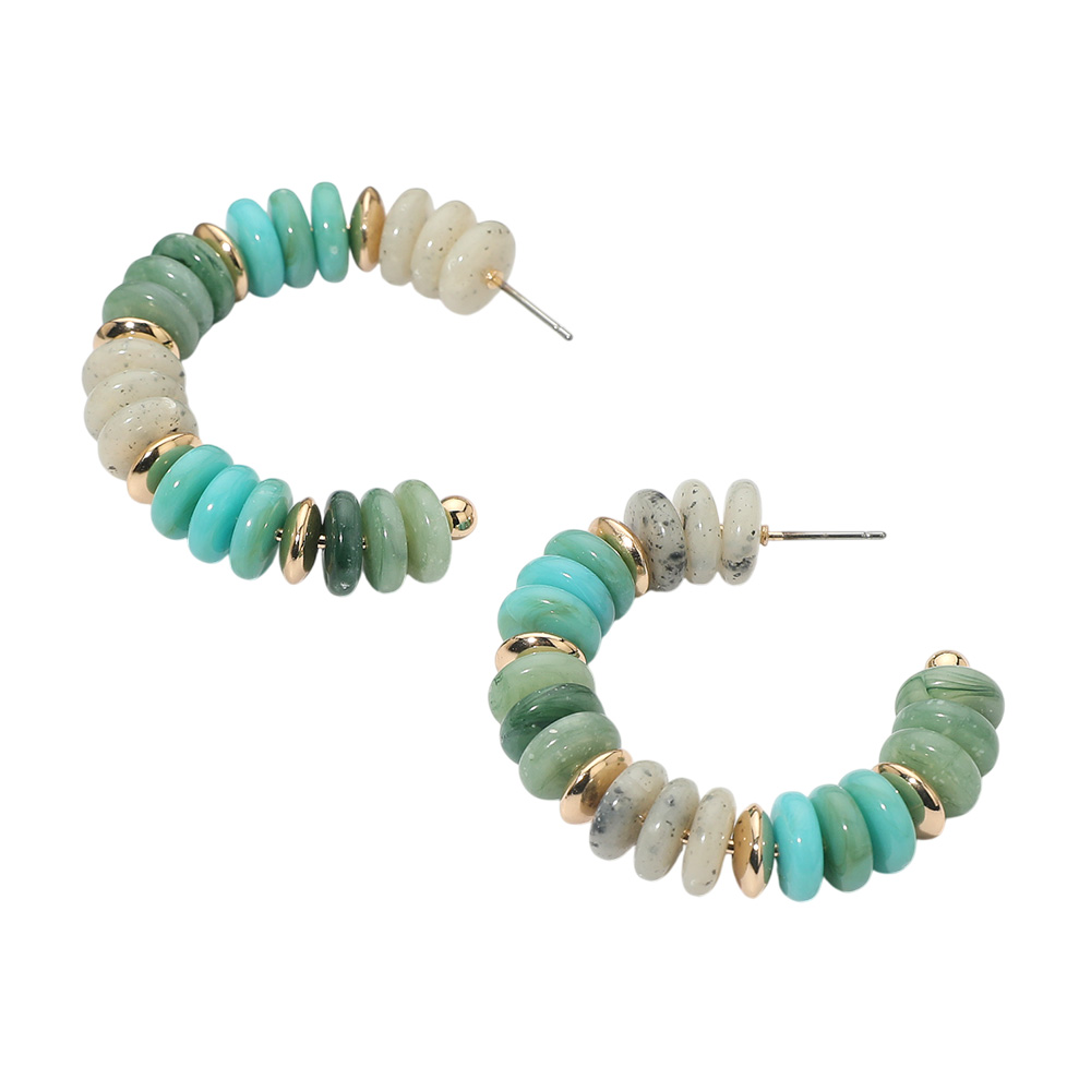 • Make a statement with beaded hoop earrings featuring a mix of smooth round accents for a striking layered look. Their bold and playful arrangement adds artistic flair, perfect for elevating casual outfits or complementing unique fashion styles.