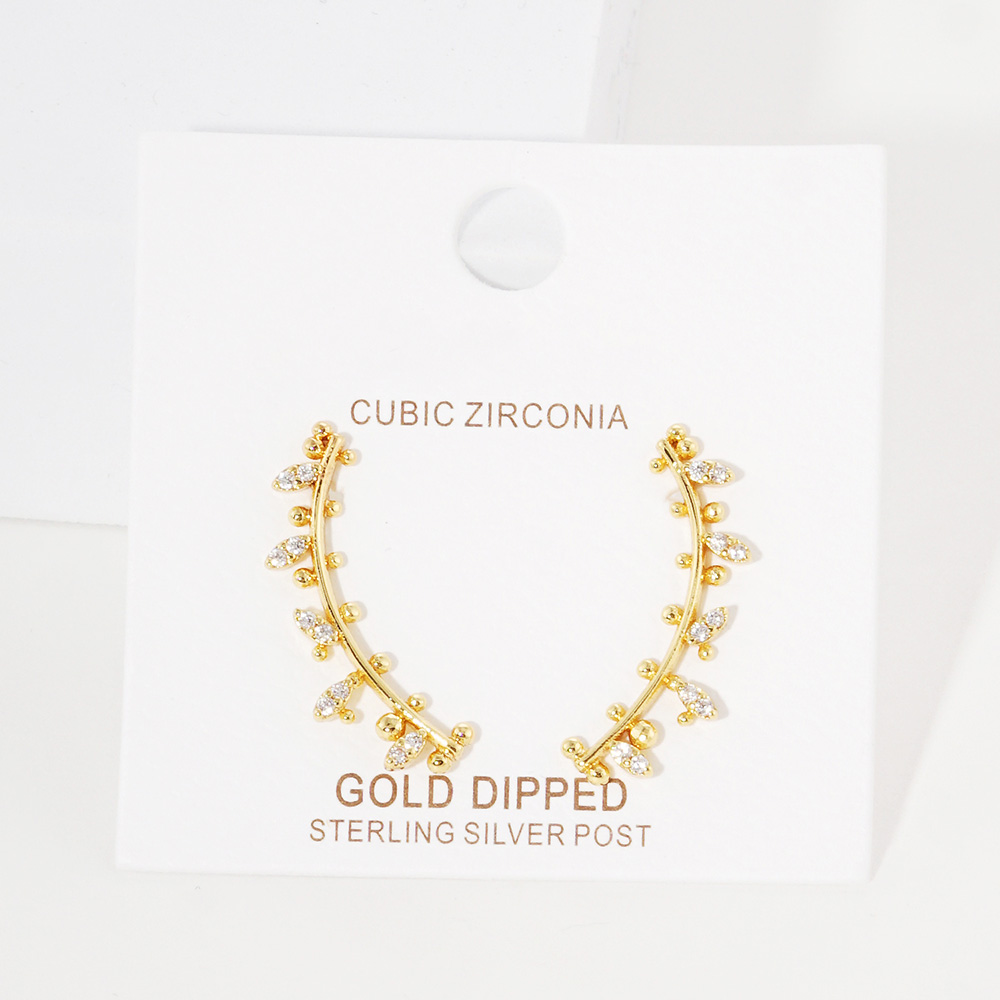 Gold Dipped Cubic Zirconia Floral Sprout Drop Earrings