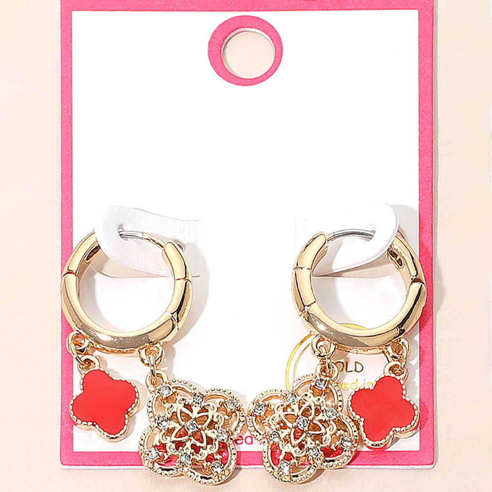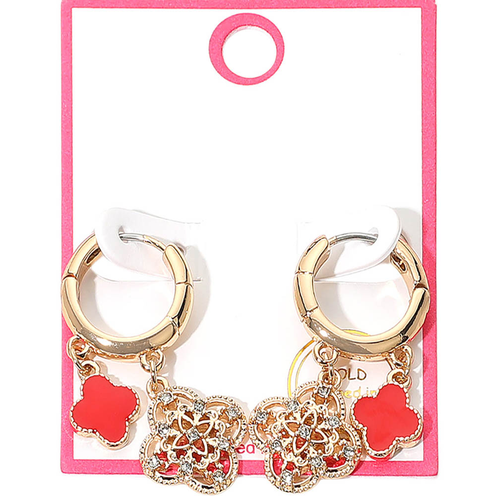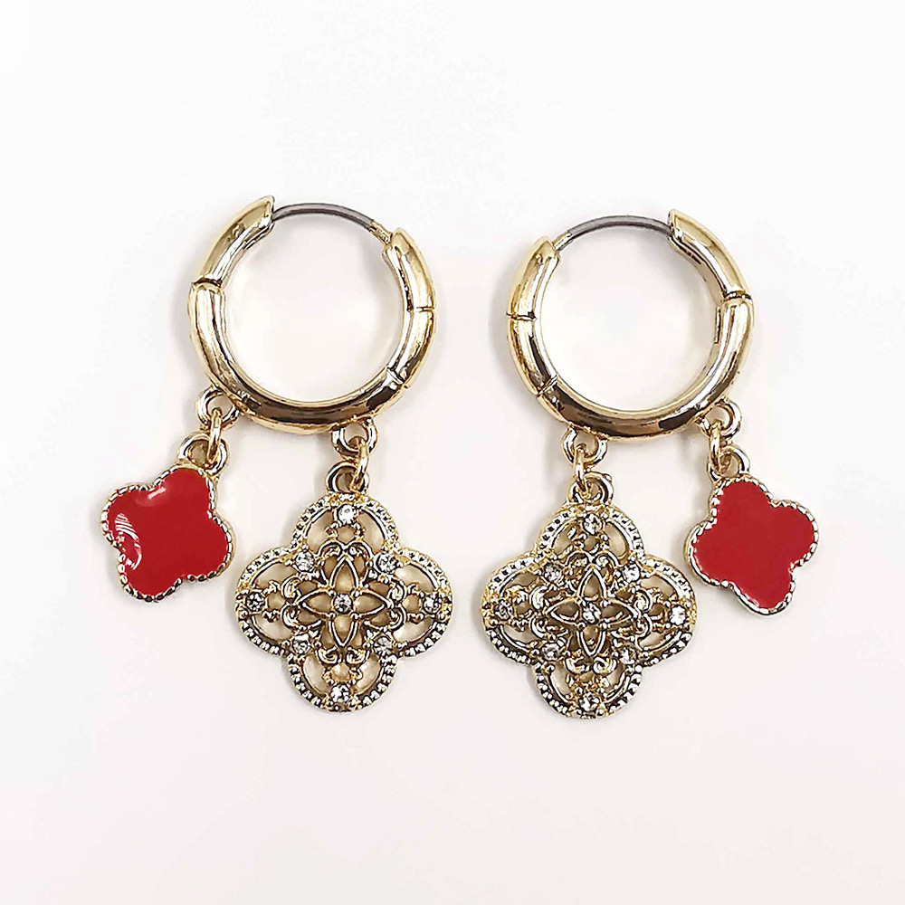 • Hoop earrings accented with delicate quatrefoil charms and intricate cutout details. Lightweight yet eye-catching, these earrings bring a touch of elegance to everyday outfits and special occasions.