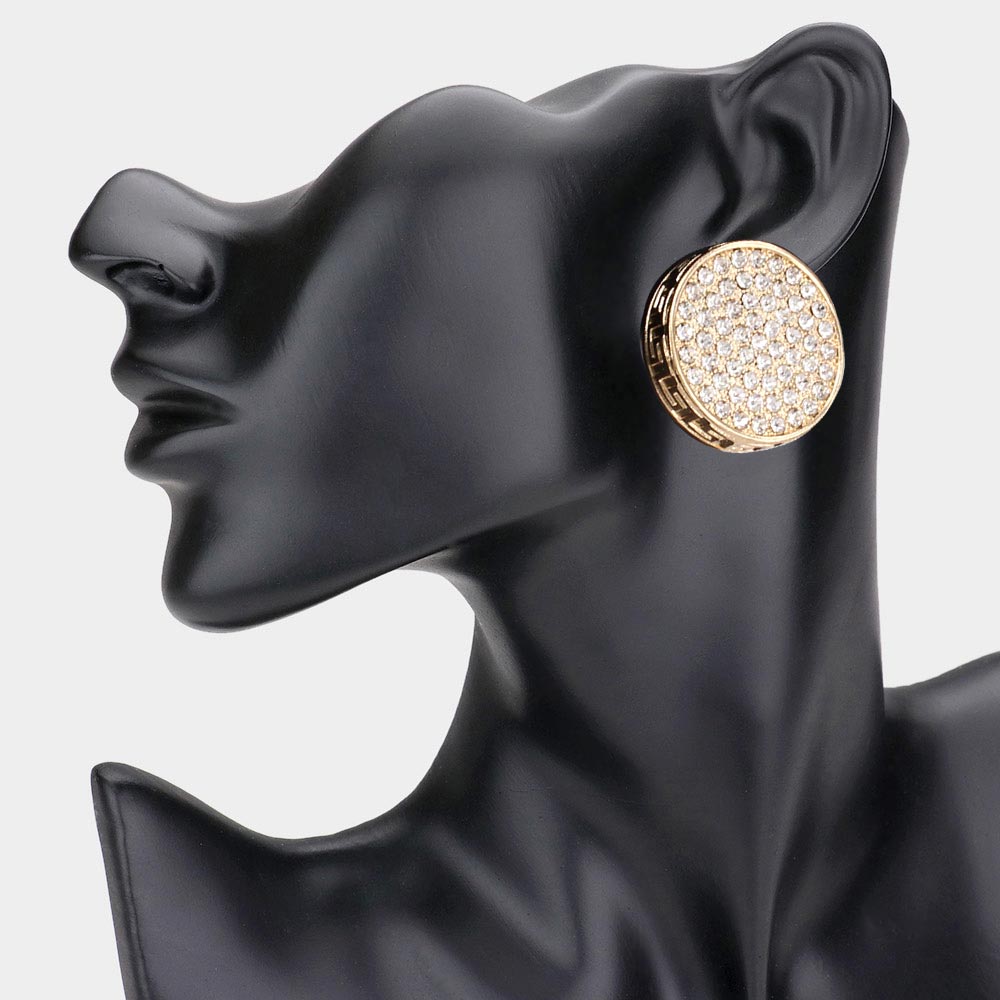 Greek Pattern Detailed Rhinestone Embellished Round Earrings Greek Pattern Detailed Rhinestone Embellished Round Earrings