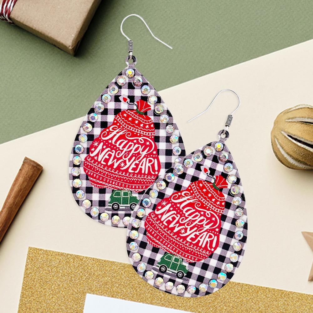 Happy New Year Message Printed Stone Trimmed Metal Teardrop Dangle Earrings Happy New Year Message Printed Stone Trimmed Metal Teardrop Dangle Earrings