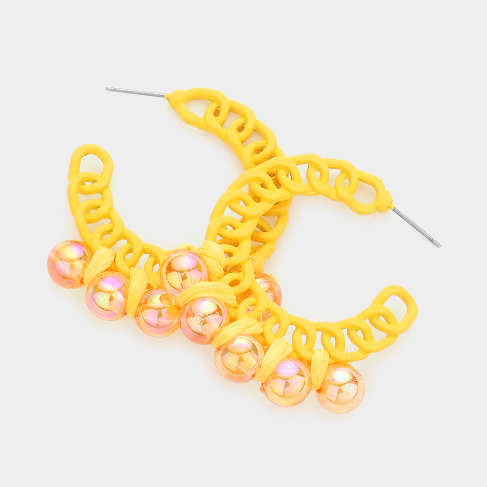Hologram Ball Pointed Colored Chain Hoop Earrings
