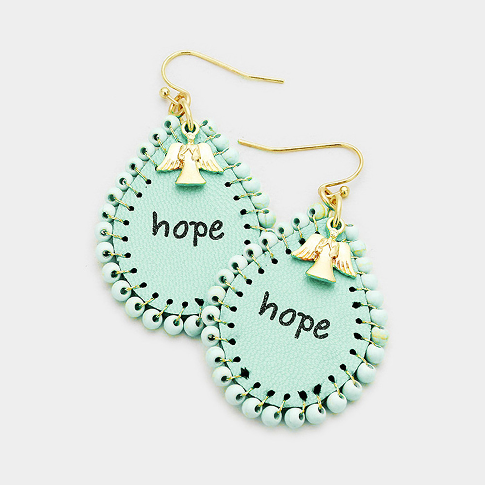 "Hope" Beads Trimmed Leather Teardrop Dangle Earrings