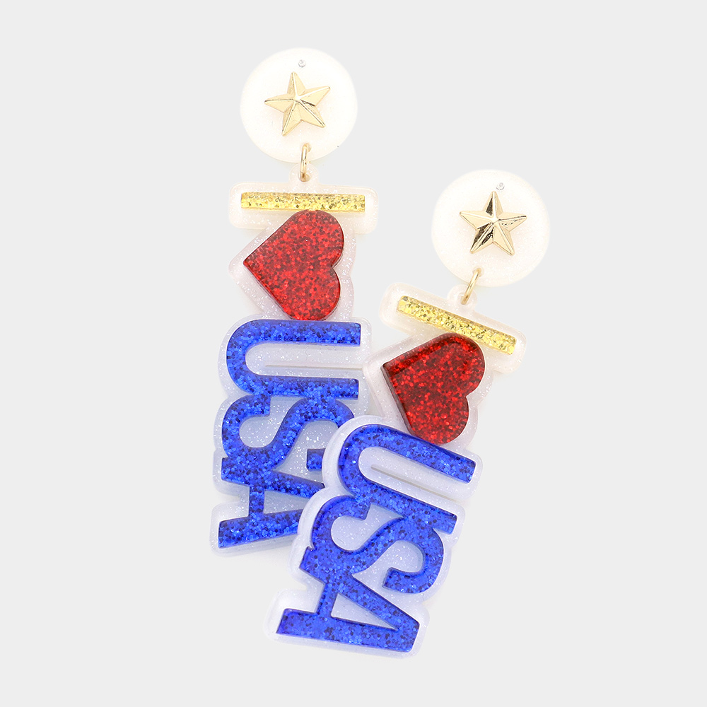 American USA Flag Colored Stone Pointed Raffia Wing Earrings