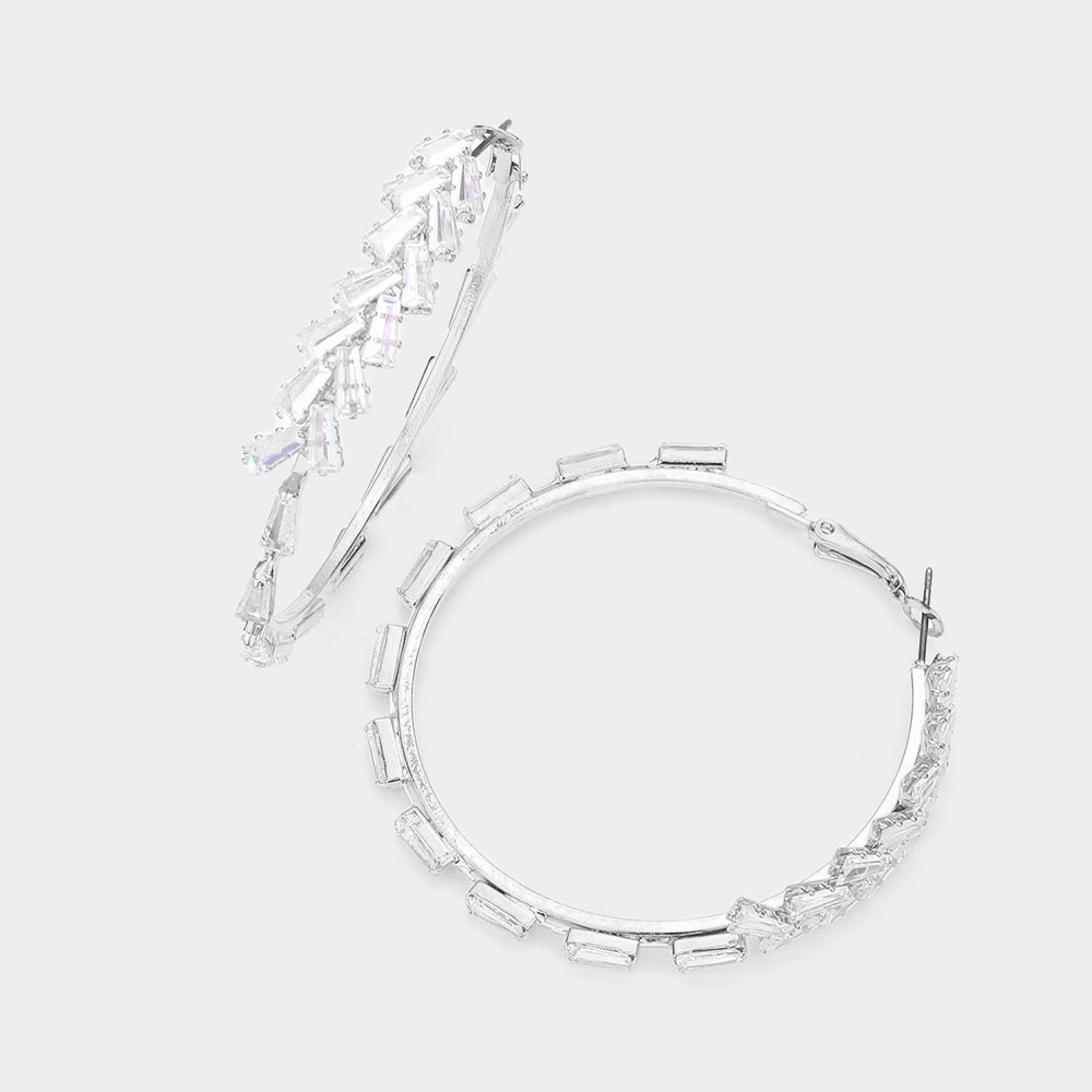 Irregular Rectangle Stone Cluster Hoop Earrings