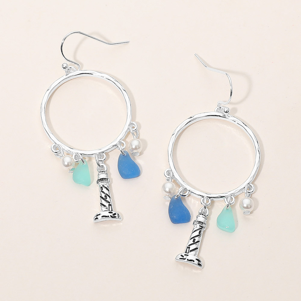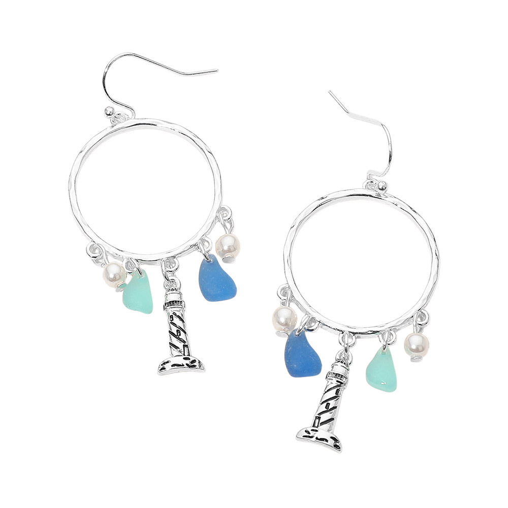 Lighthouse Sea Glass Charm Drop Open Ring Dangle Earrings Lighthouse Sea Glass Charm Drop Open Ring Dangle Earrings