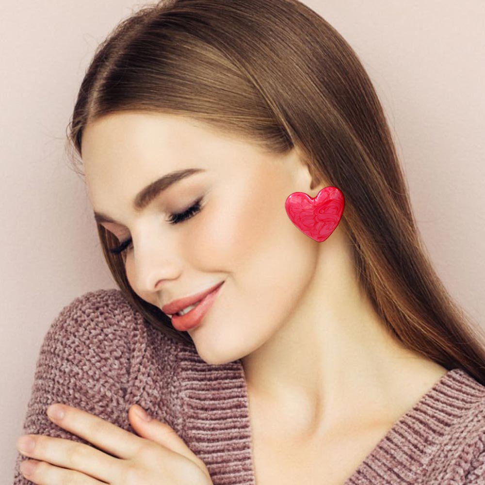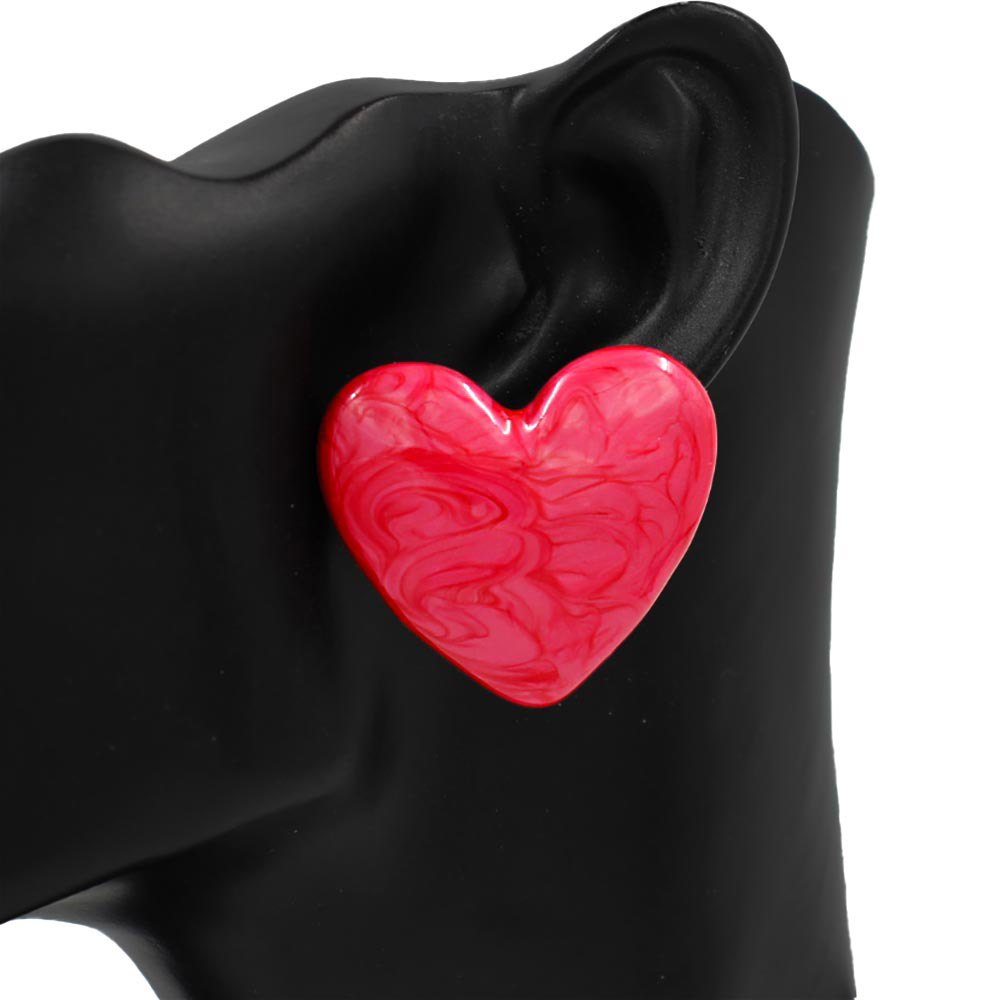 Details • Size : 1.5" X 1.3" • Post Back • Charming heart-shaped stud earrings designed with a smooth, polished finish and bold silhouette. Perfect for boutiques and gift collections, these studs offer playful elegance for daily wear, casual outfits, date nights, and trendy seasonal styling. • Lead and Nickel Compliant