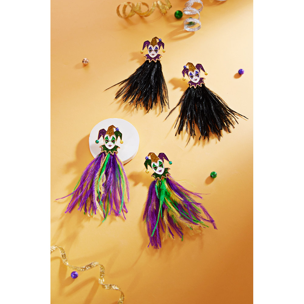 Mardi Gras Glittered Jester Pierrot Feather Earrings