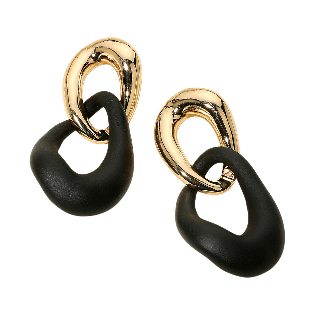 • Contemporary drop earrings featuring chunky abstract links in mixed matte and polished metal finishes. Lightweight with a bold silhouette, these earrings add a modern edge to everyday outfits and statement style to evening looks.