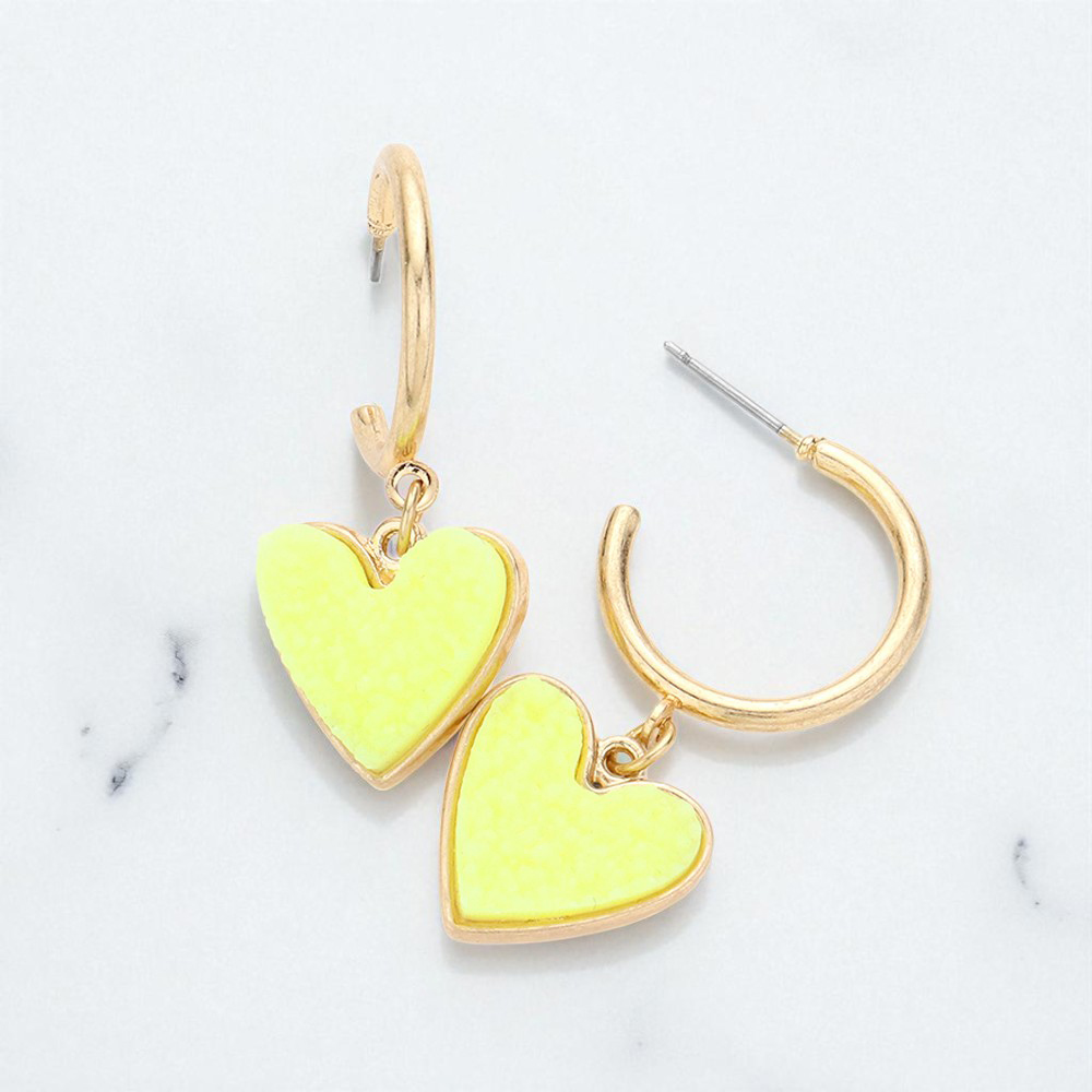 Metal Half Hoop Druzy Heart Dangle Earrings