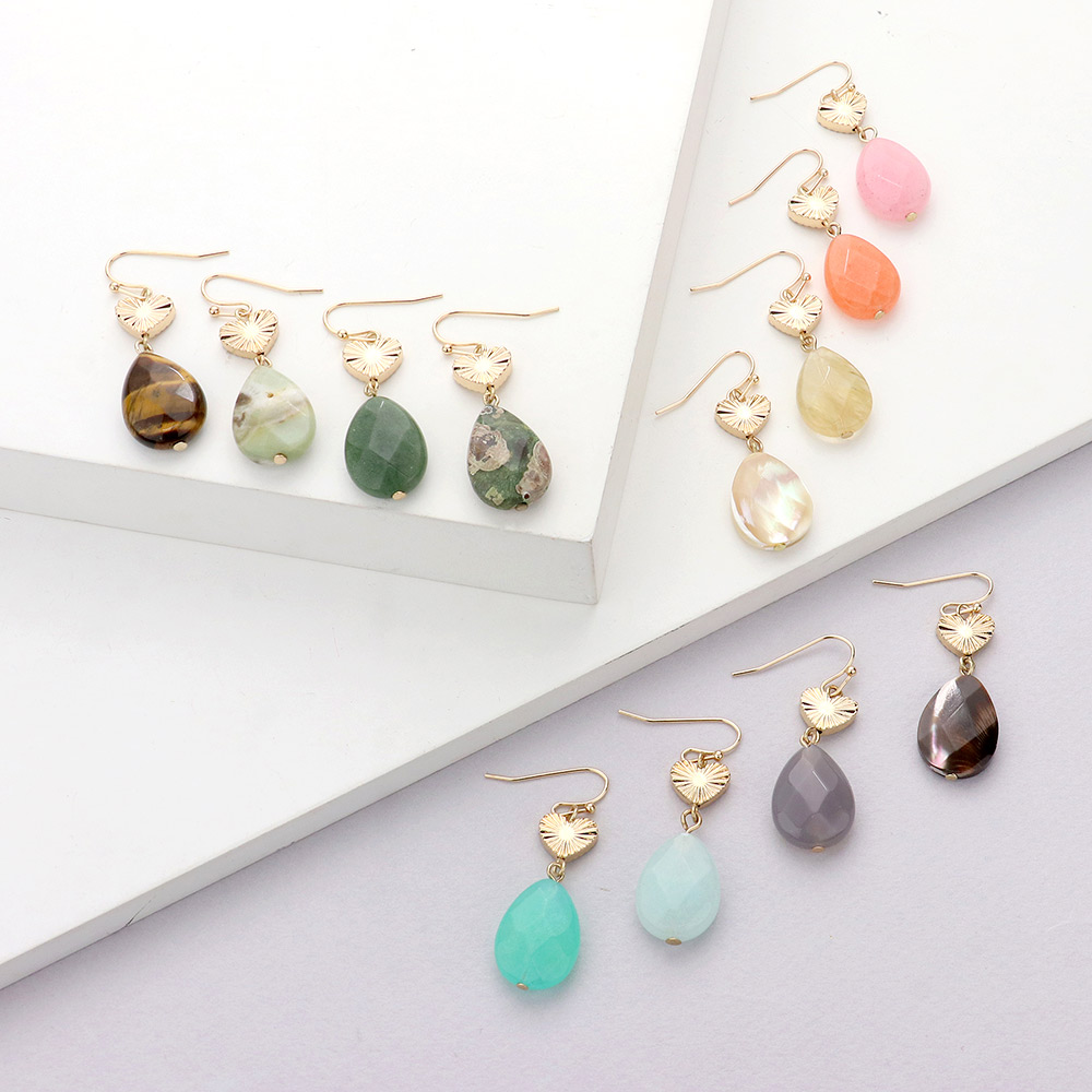 Metal Heart Teardrop Natural Stone Link Dangle Earrings