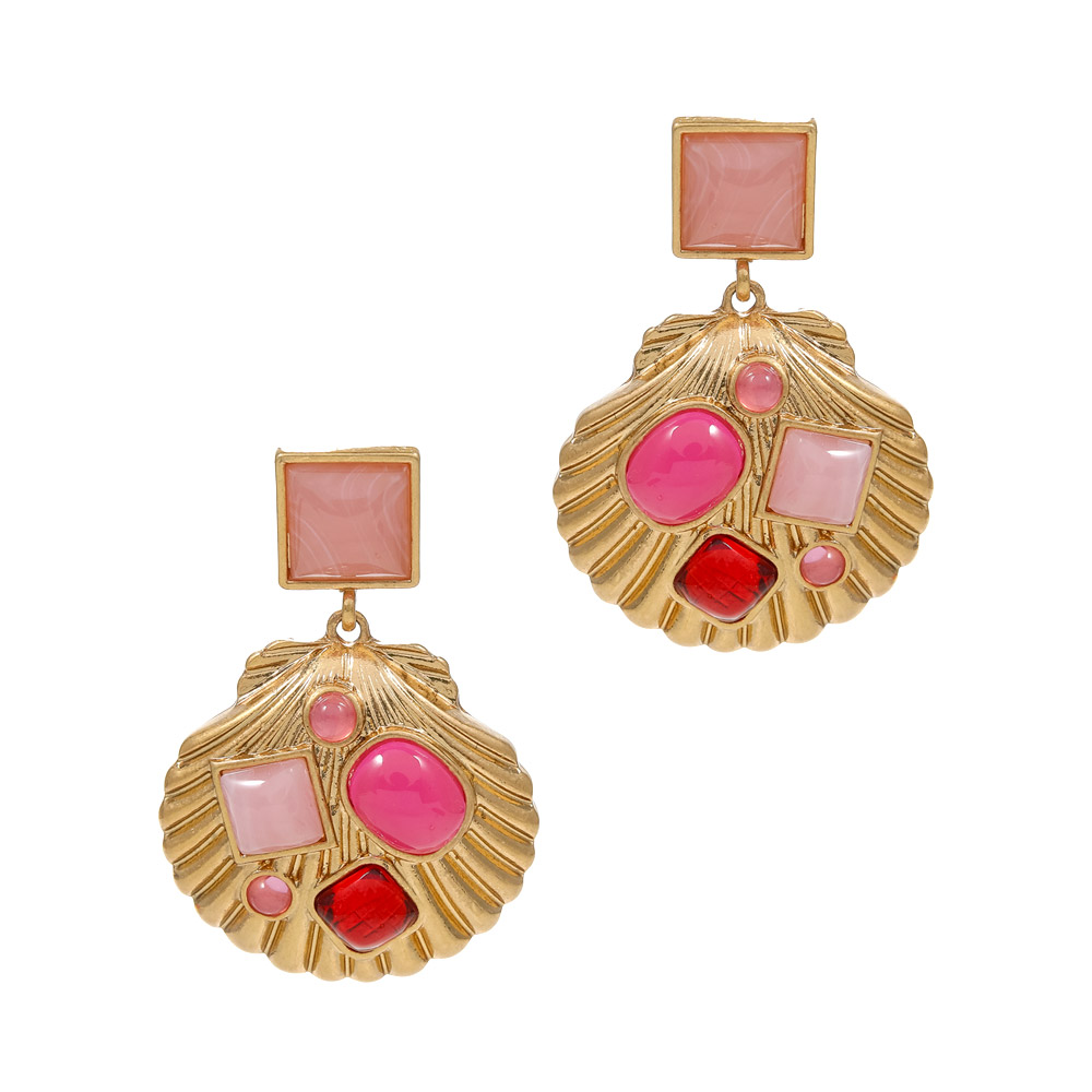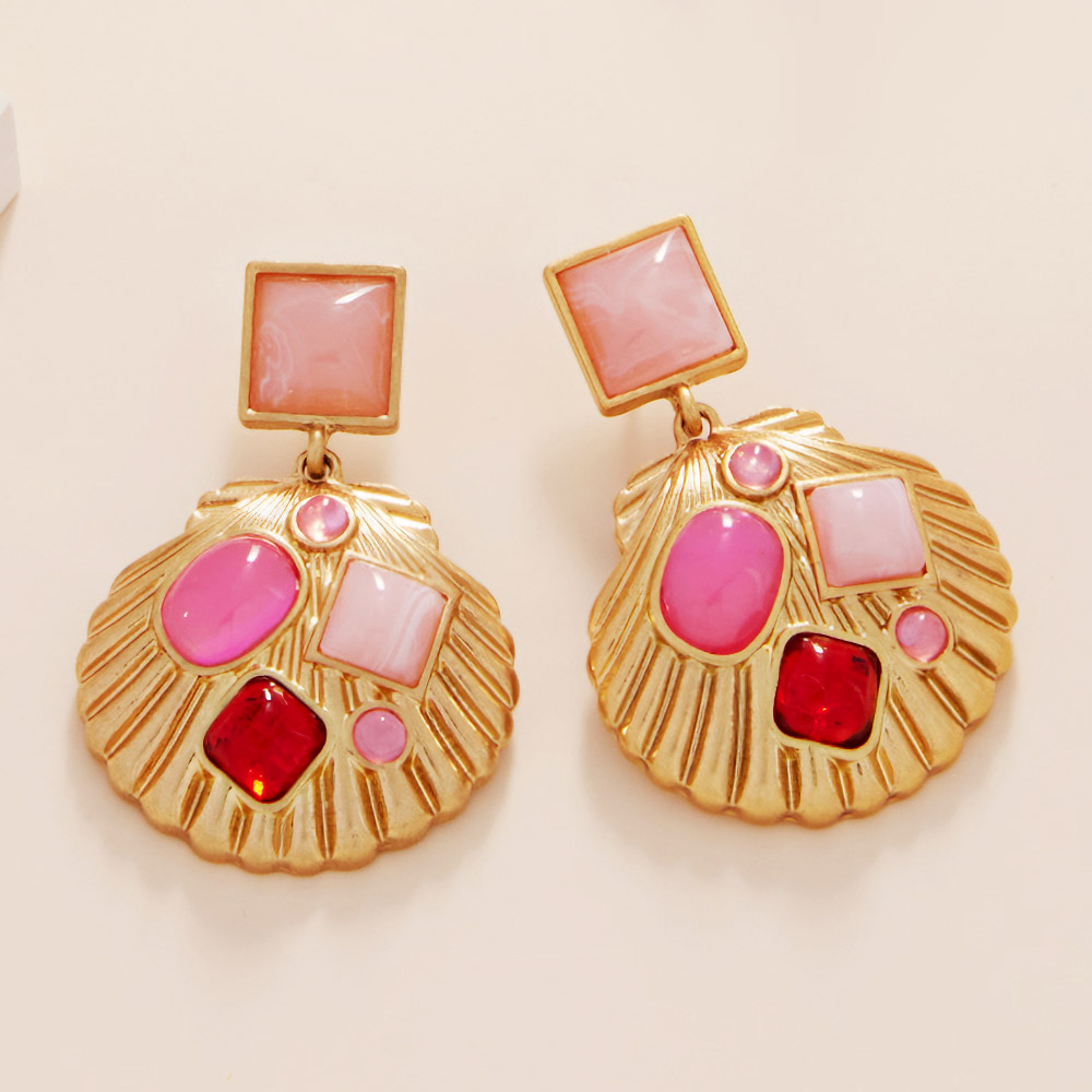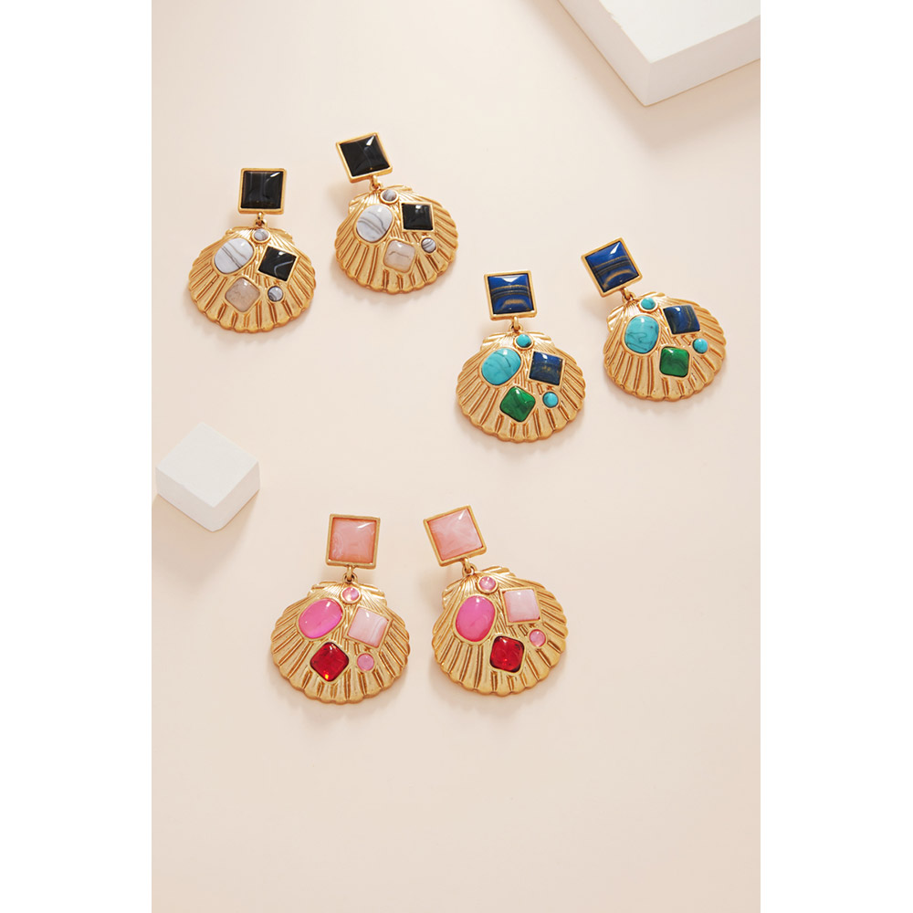 Natural Stone Accented Shell Dangle Earrings