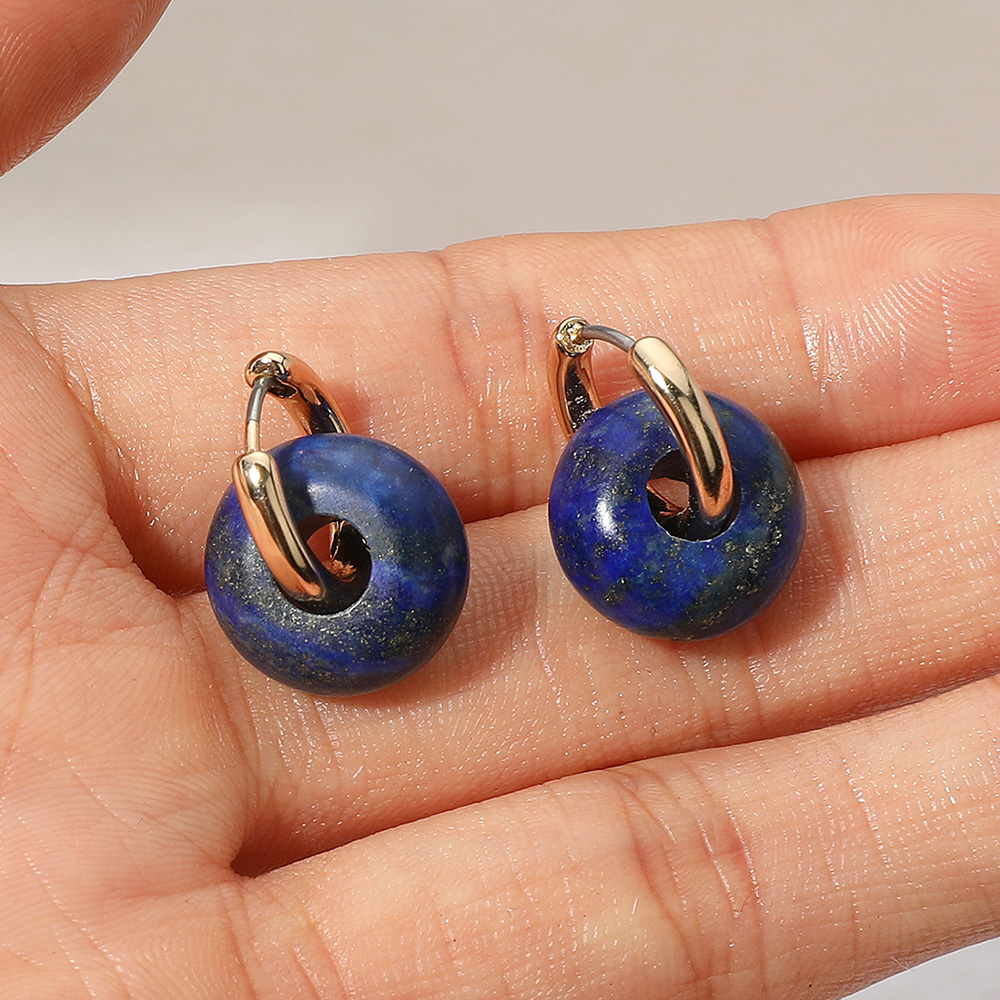 • A versatile collection of mini hoop earrings accented with smooth stone charms in assorted finishes. Each pair features a polished gold-tone huggie-style hoop with a hinged closure for easy, secure wear. From soft rose and frosted white to bold turquoise, lapis, and golden brown, these earrings offer a perfect mix of everyday neutrals and statement tones. Lightweight, comfortable, and ideal for layering or gifting.