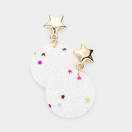 Metal Disc Faceted Beaded Open Ring Dangle Earrings