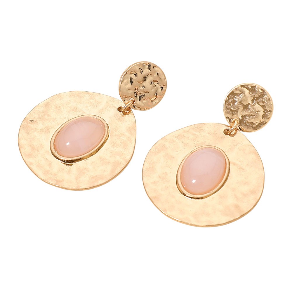 Details • Size : 1.25" X 1.75" • Post Back • These hammered disc drop earrings feature a smooth oval centerpiece for a chic, artistic look. Lightweight and stylish, they add a touch of modern elegance to casual or dressy outfits, making them a versatile accessory for everyday wear or special occasions. • Lead and Nickel Compliant