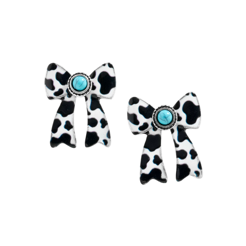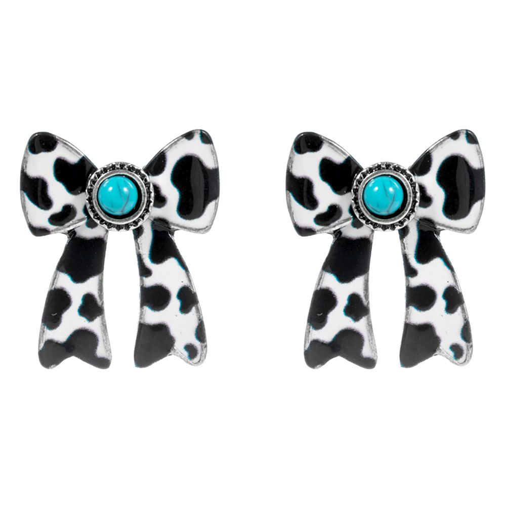Oval Turquoise Stone Center Animal Pattern Print Western Bow Earrings Oval Turquoise Stone Center Animal Pattern Print Western Bow Earrings Oval Turquoise Stone Center Animal Pattern Print Western Bow Earrings