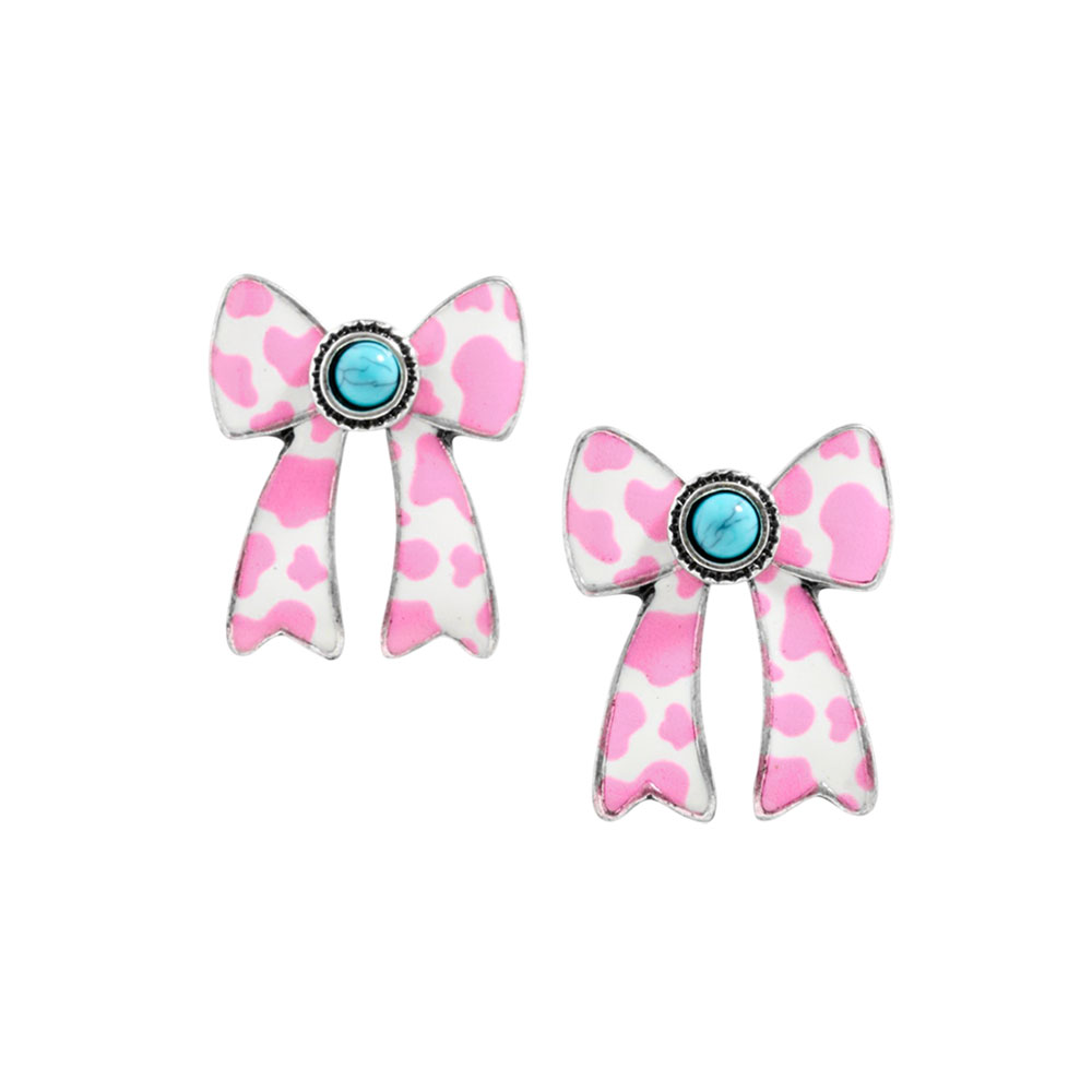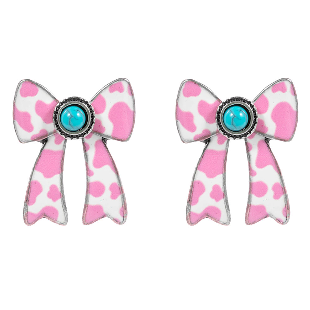 Oval Turquoise Stone Center Animal Pattern Print Western Bow Earrings Oval Turquoise Stone Center Animal Pattern Print Western Bow Earrings Oval Turquoise Stone Center Animal Pattern Print Western Bow Earrings