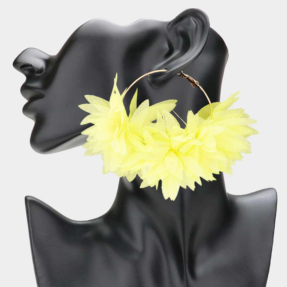 Oversized Fabric Floral Petal Statement Hoop Earrings Oversized Fabric Floral Petal Statement Hoop Earrings