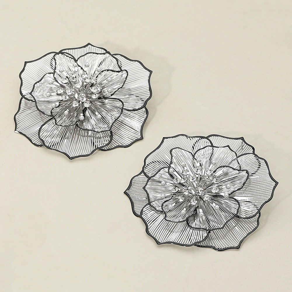 Details • Size : 3" X 2.6" • Post Back • Chic layered wire flower brooch with sparkling crystal accents. A statement floral pin perfect for jackets, scarves, or bags. Lightweight yet eye-catching—adds elegance and charm to any outfit. • Lead and Nickel Compliant