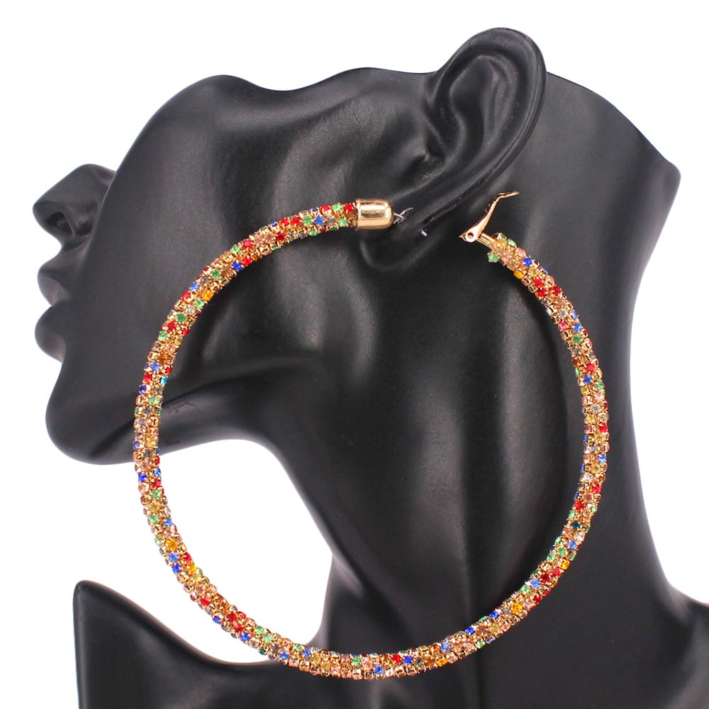 • Shine bright with these oversized rhinestone hoop earrings designed for maximum sparkle and glamour. Perfect for parties, night outs, or special events, they deliver bold style and lightweight comfort, making them the ultimate statement accessory for standout looks.