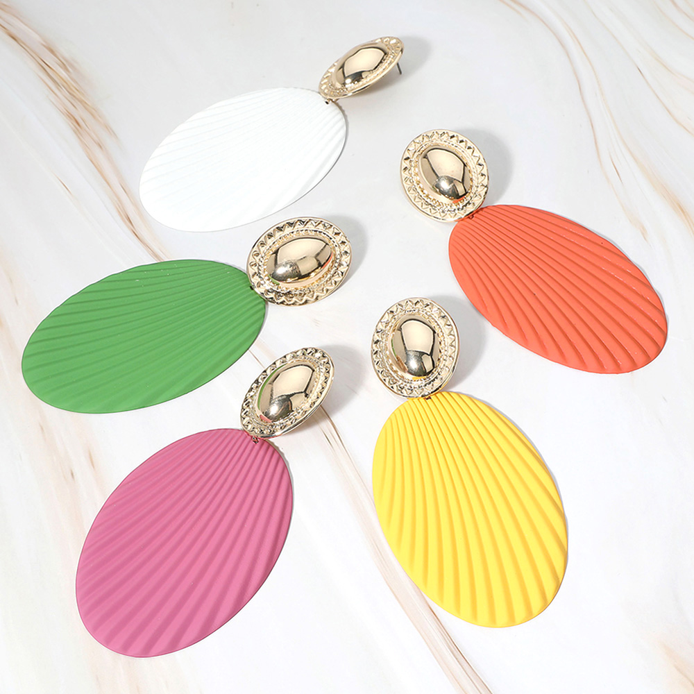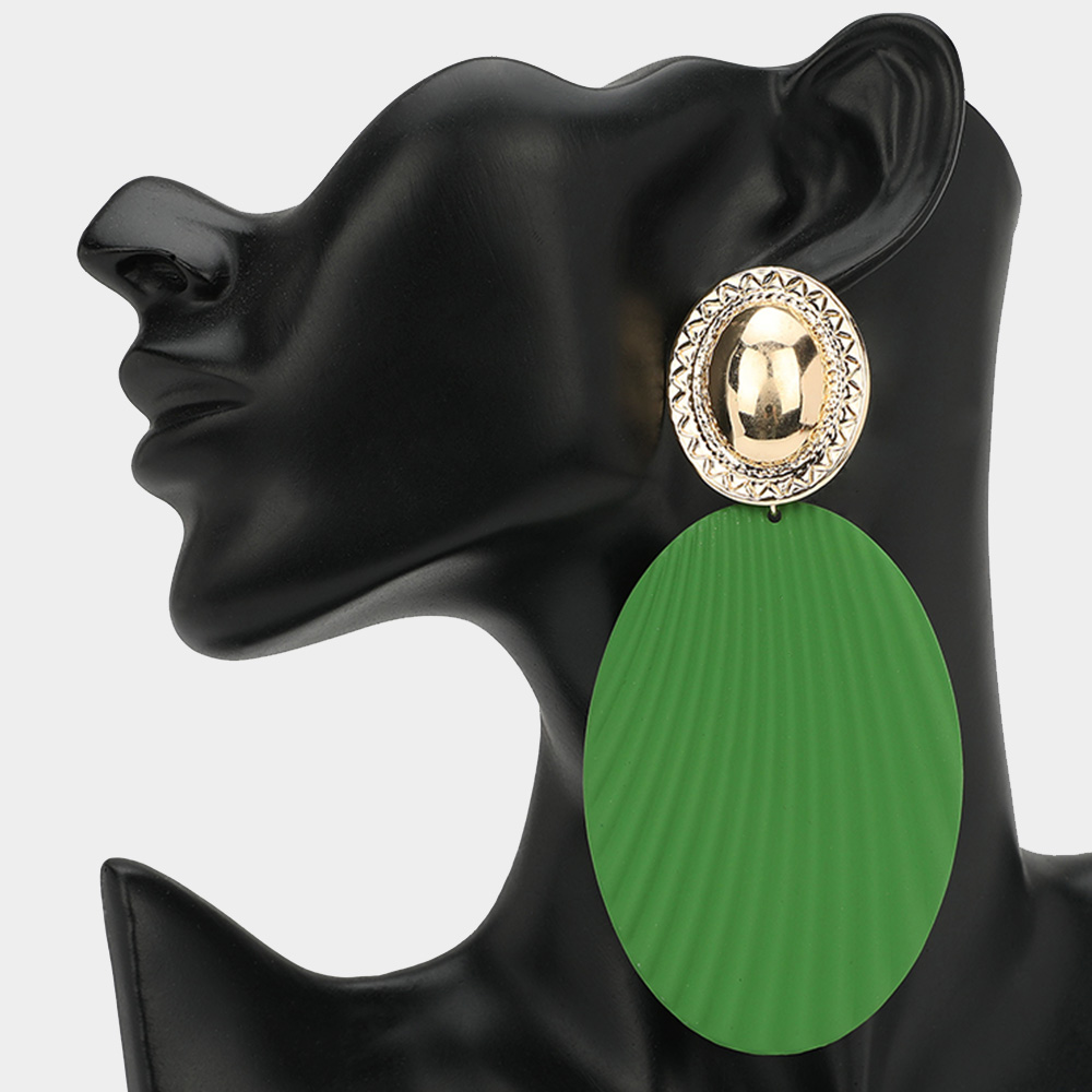 Oversized Textured Oval Plate Dangle Earrings