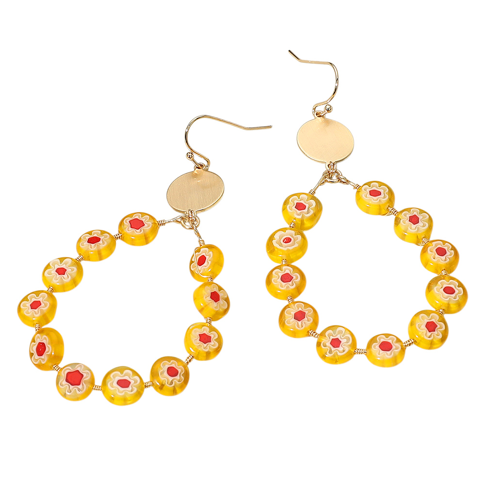 • Bring a playful touch to your style with these floral beaded hoop earrings featuring vibrant flower details and a sleek round disc accent. Lightweight and eye-catching, they are perfect for adding charm to everyday outfits or enhancing your look for special occasions.