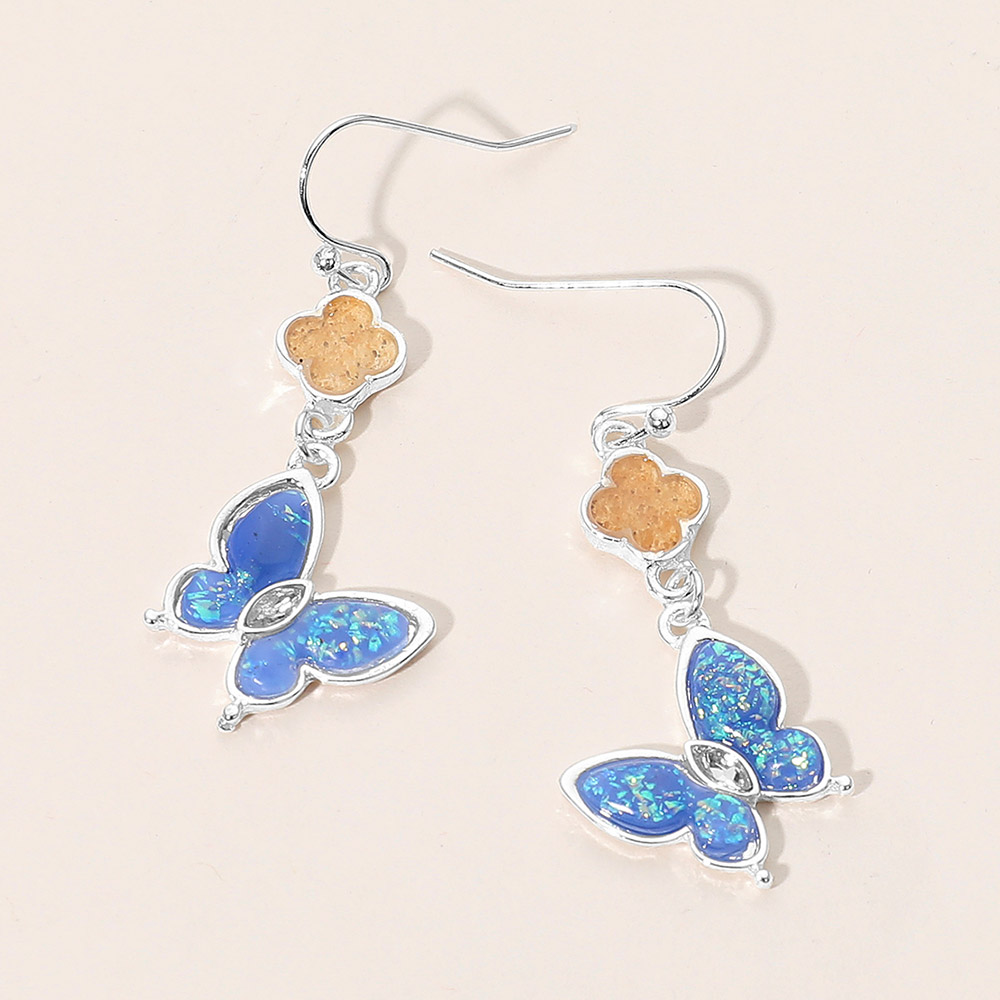 Metal Butterfly Stone Flower Cluster Dangle Earrings