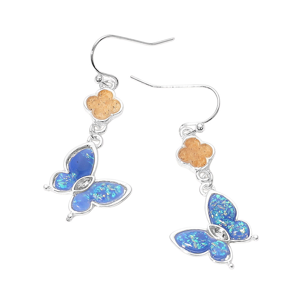 • Butterfly charm drop earrings featuring a graceful dangling design with delicate movement. A charming accessory for everyday styling, spring and summer outfits, gift shops, and seasonal collections, adding a whimsical touch that pairs easily with casual looks or dressy ensembles.