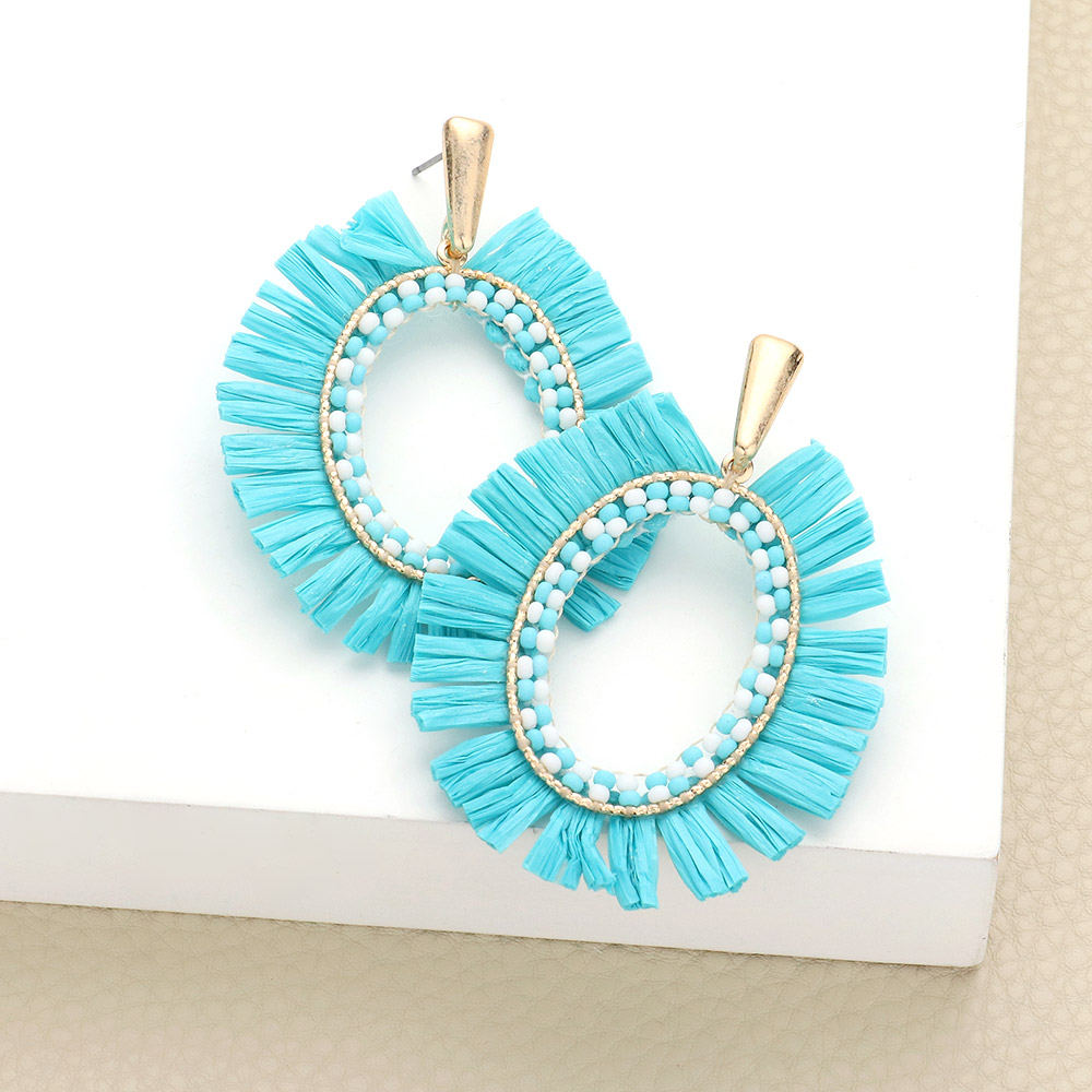 Raffia Wrapped Double Open Heart Link Dangle Earrings