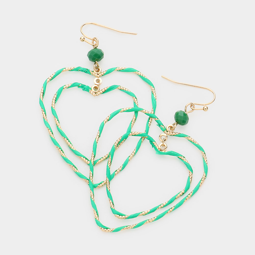 Raffia Wrapped Double Open Heart Link Dangle Earrings