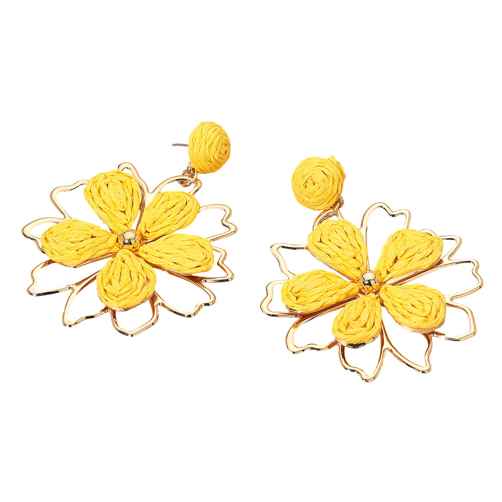 Raffia Wrapped Floral Petal Dangle Earrings Raffia Wrapped Floral Petal Dangle Earrings