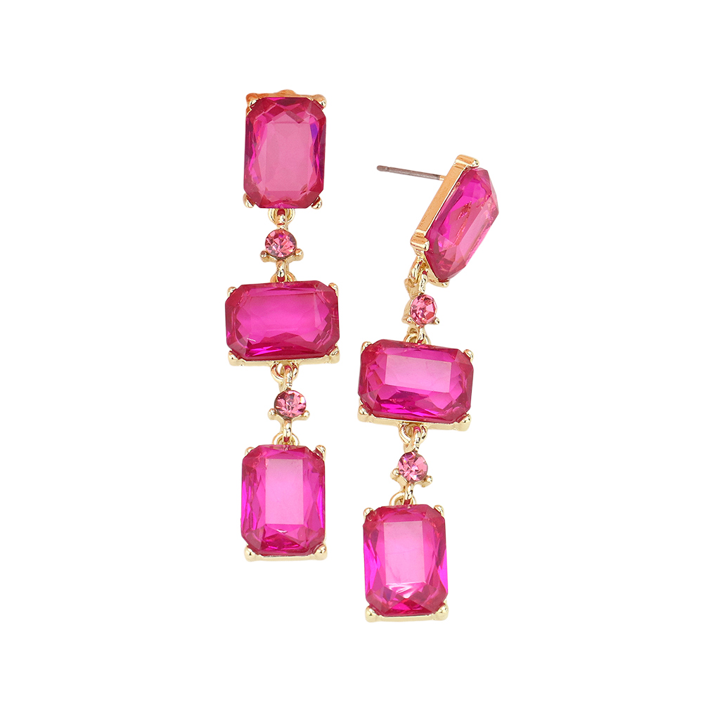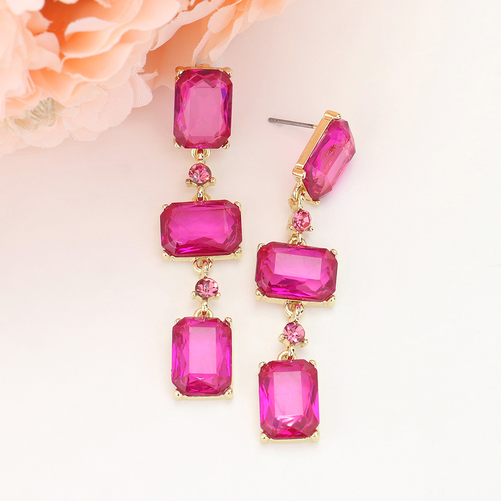 Iridescent Rectangular Stone Cluster Link Drop Earrings