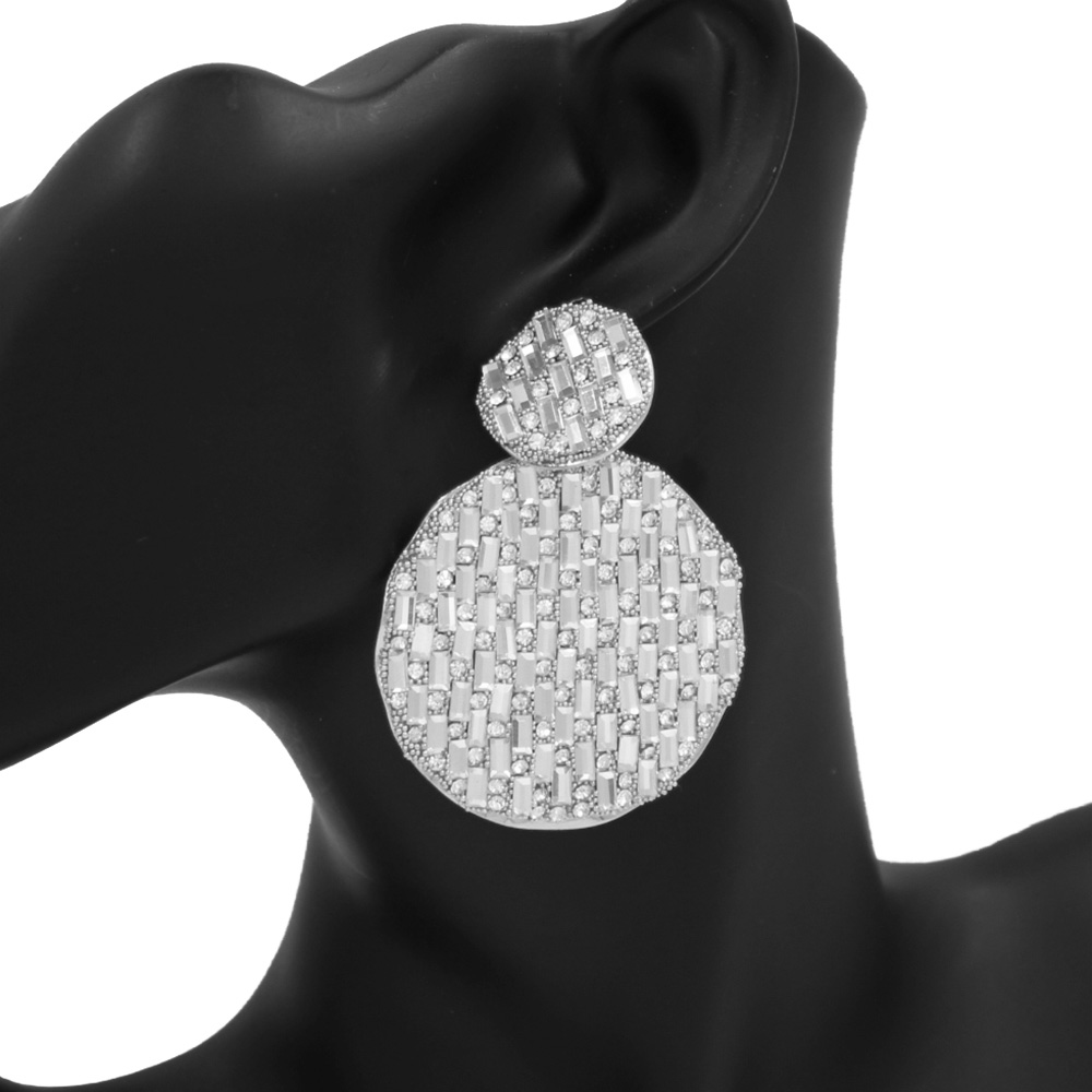 Rectangle Stone Accented Disc Linked Earrings