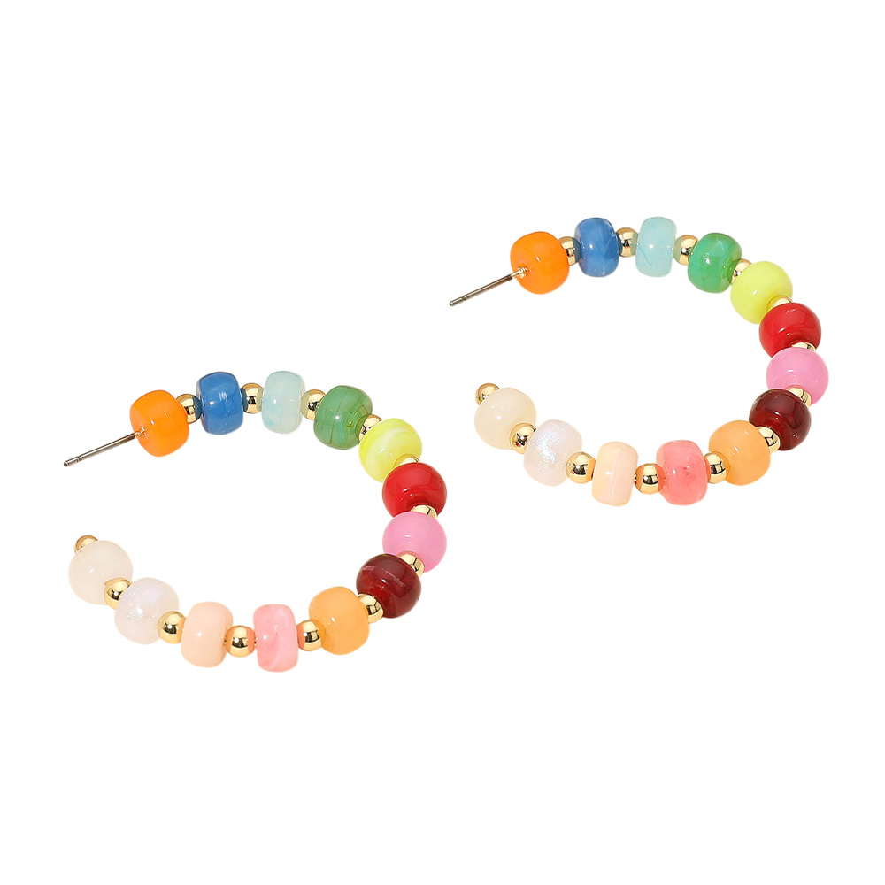 • Stylish beaded hoop earrings featuring glossy resin beads and gold-tone accents. Lightweight and comfortable for daily wear, these trendy hoops add a warm, modern touch to any outfit. Perfect for casual looks or gifting.