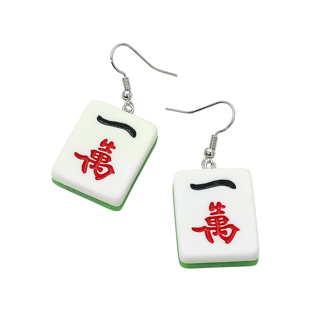 Resin Mahjong Tile Dangle Earrings Resin Mahjong Tile Dangle Earrings Resin Mahjong Tile Dangle Earrings