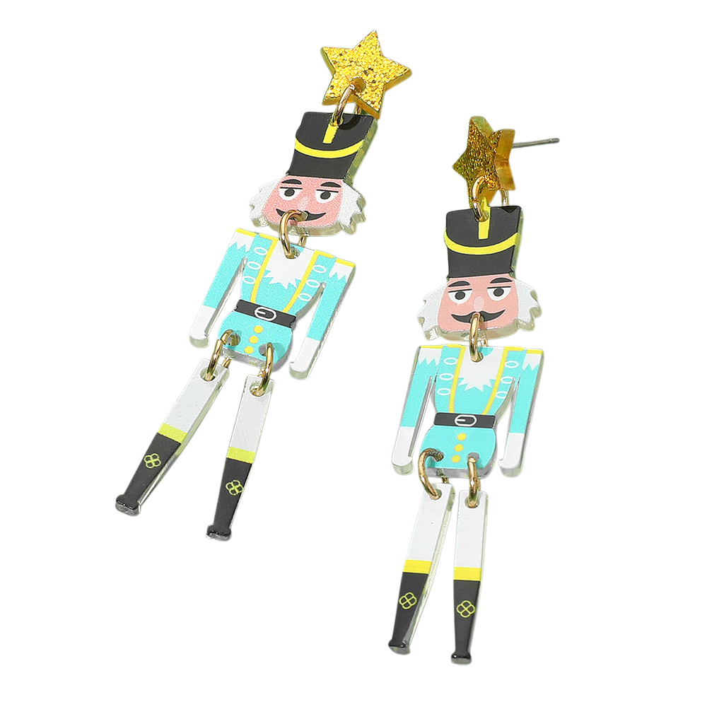 Details • Size : 0.7" X 3.2" • Post Back • Celebrate festive charm with these nutcracker soldier drop earrings featuring glittering star studs and playful detailing. Lightweight and eye-catching, they’re perfect for holiday parties, seasonal outfits, or adding whimsical fun to your jewelry collection with a touch of festive flair. • Lead and Nickel Compliant