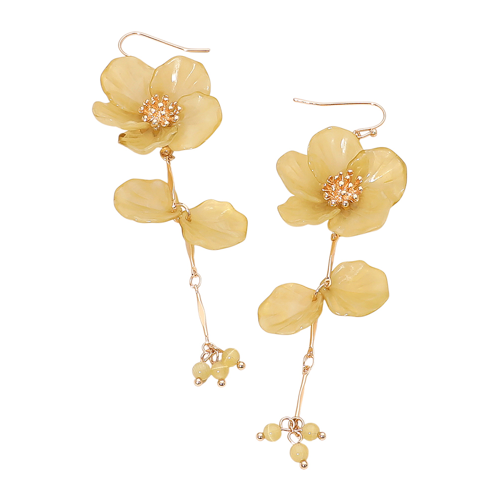 Resin Petal Floral Long Drop Earrings Resin Petal Floral Long Drop Earrings