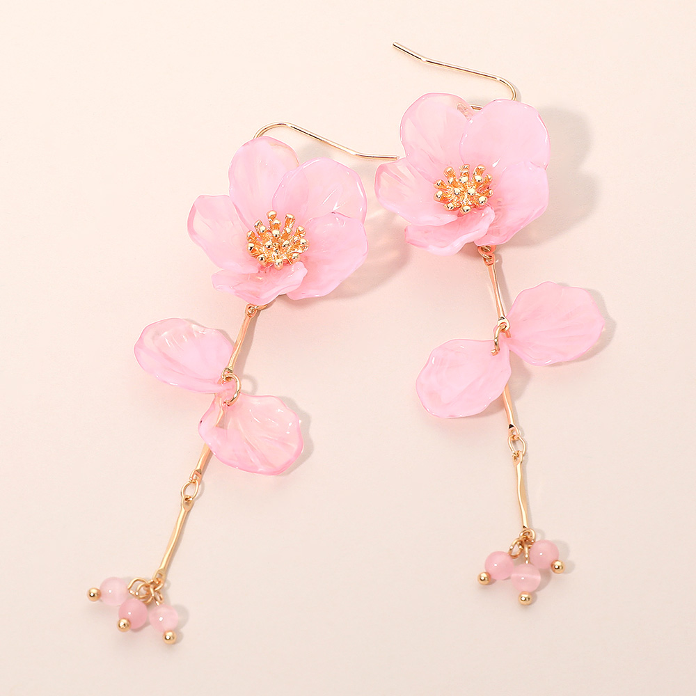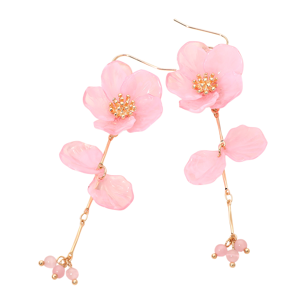 Resin Petal Floral Long Drop Earrings