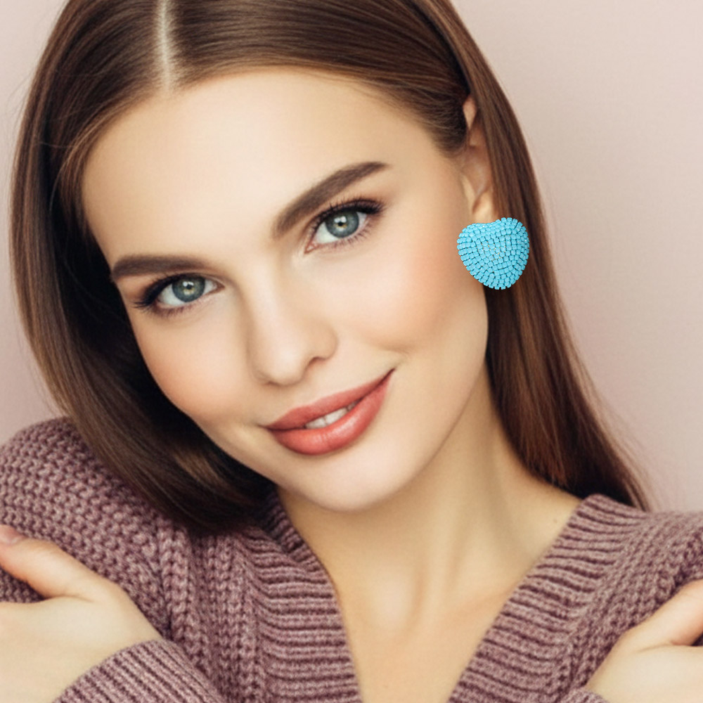 • Elegant heart stud earrings designed with a dimensional pavĂ© surface that delivers eye-catching sparkle and refined texture. A timeless yet statement-ready accessory ideal for boutiques, gift collections, special occasions, and everyday looks that elevate modern styling.