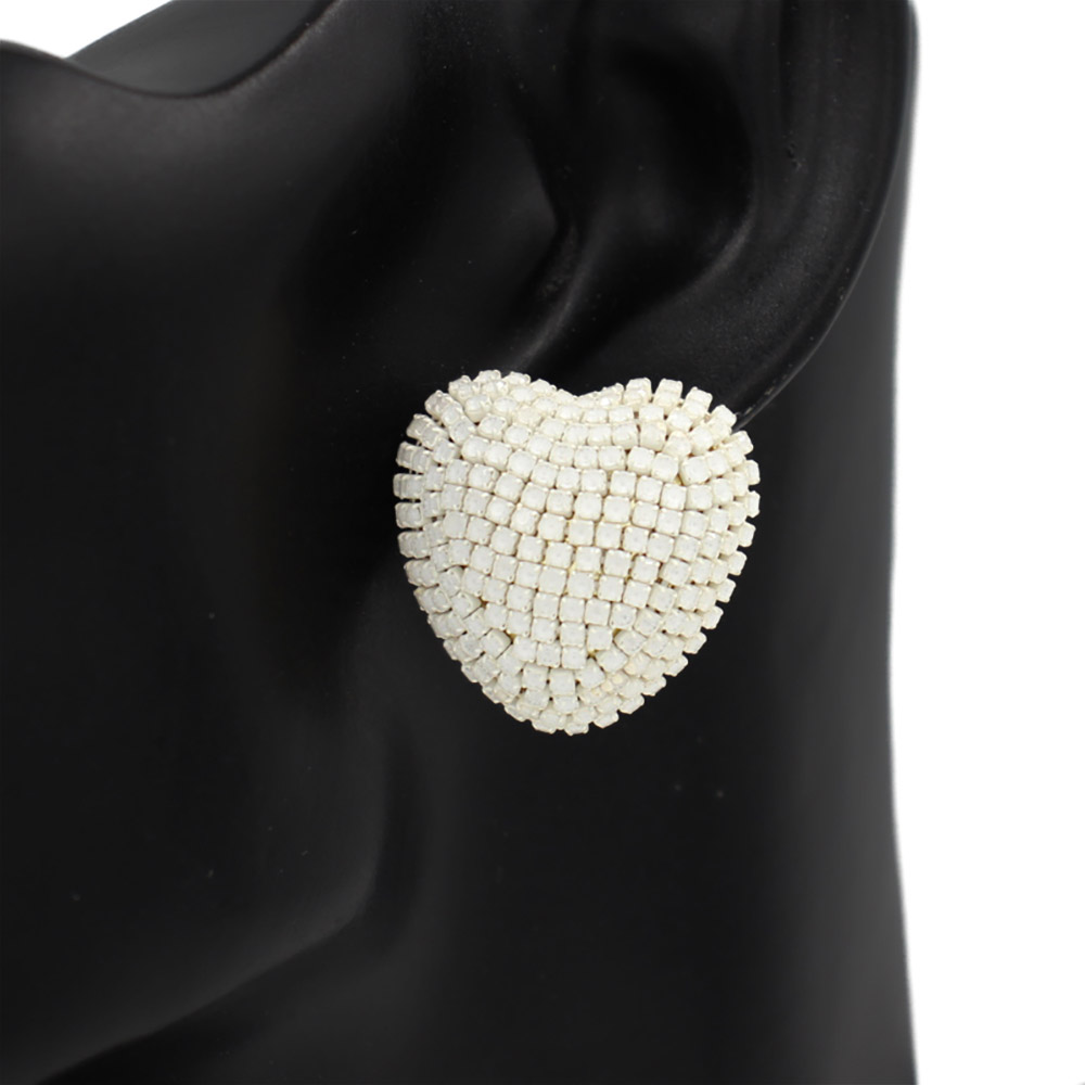 • Elegant heart stud earrings designed with a dimensional pavĂ© surface that delivers eye-catching sparkle and refined texture. A timeless yet statement-ready accessory ideal for boutiques, gift collections, special occasions, and everyday looks that elevate modern styling.