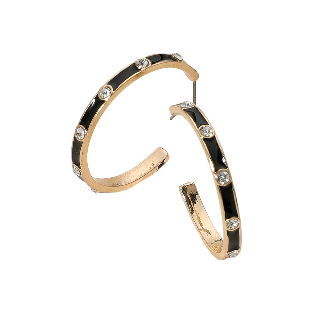 Round Stone Bezel Around Enamel Hoop Earrings