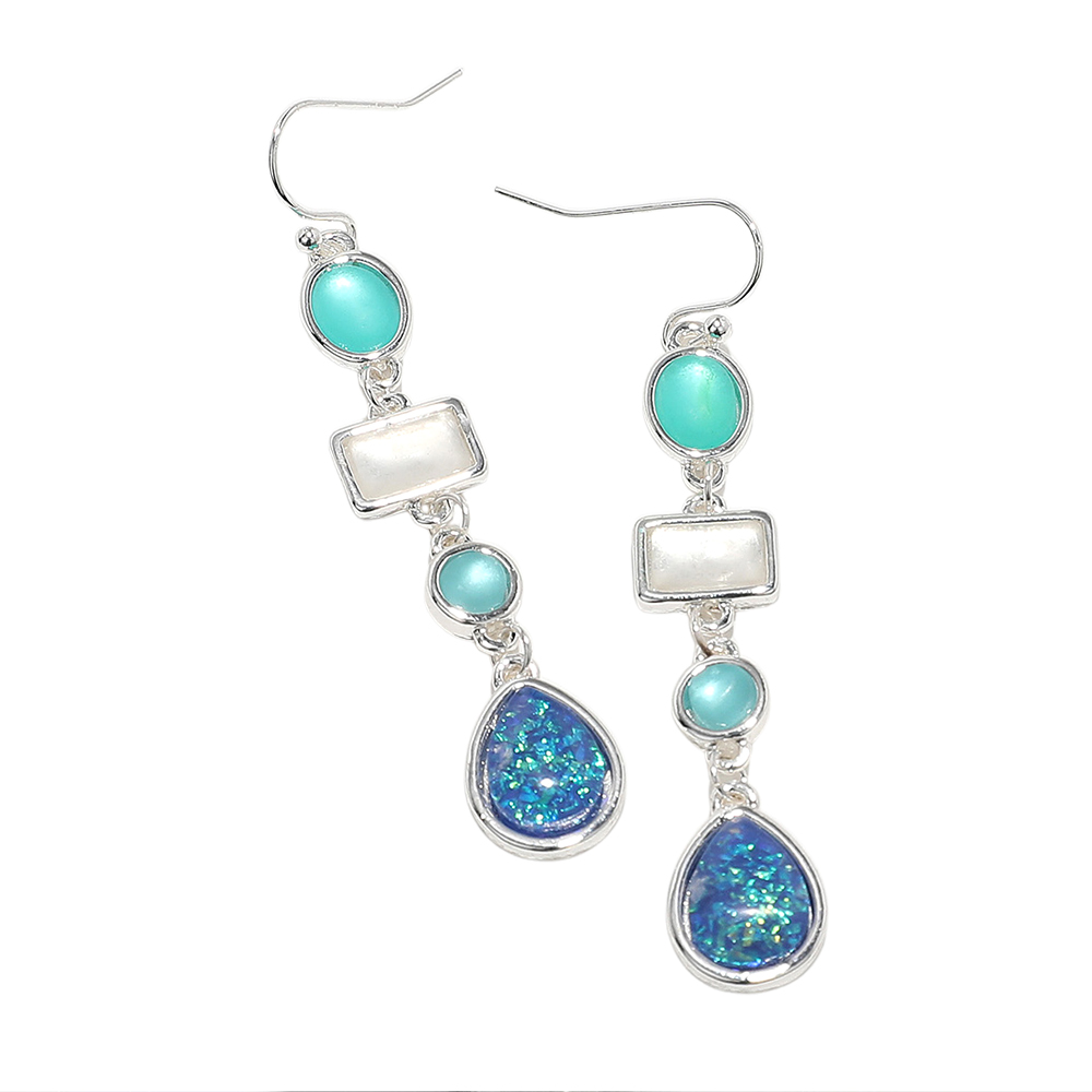 Stone Pointed Metal Cutout Flower Link Dropdown Earrings