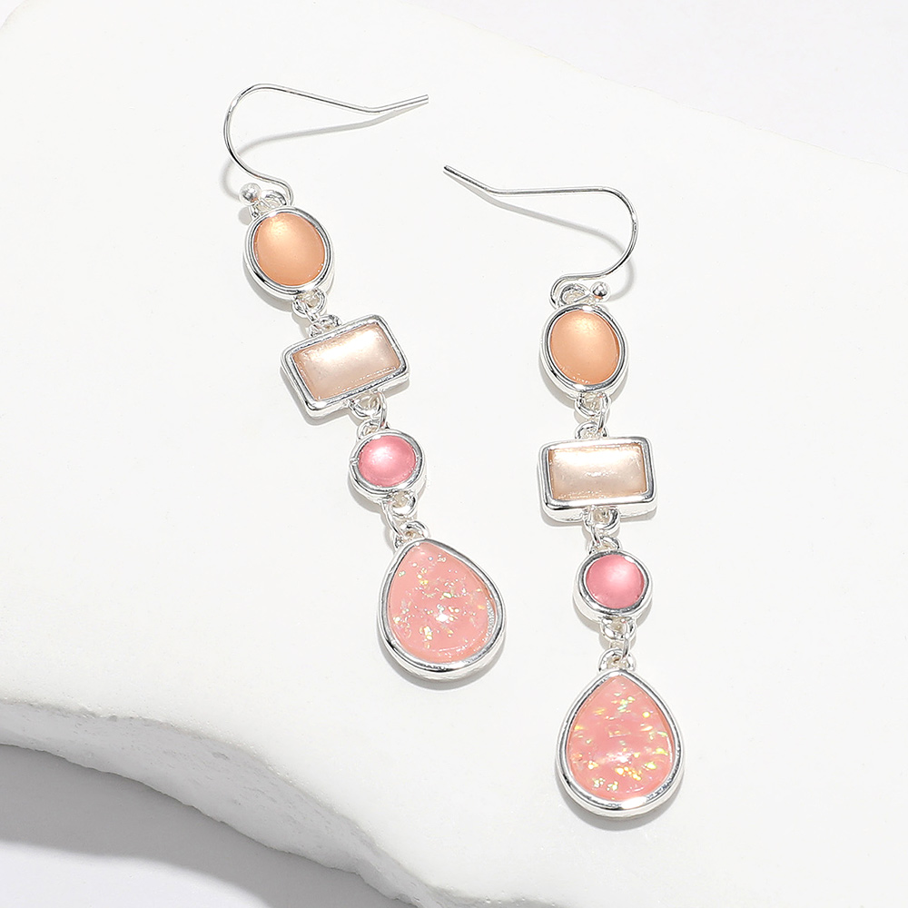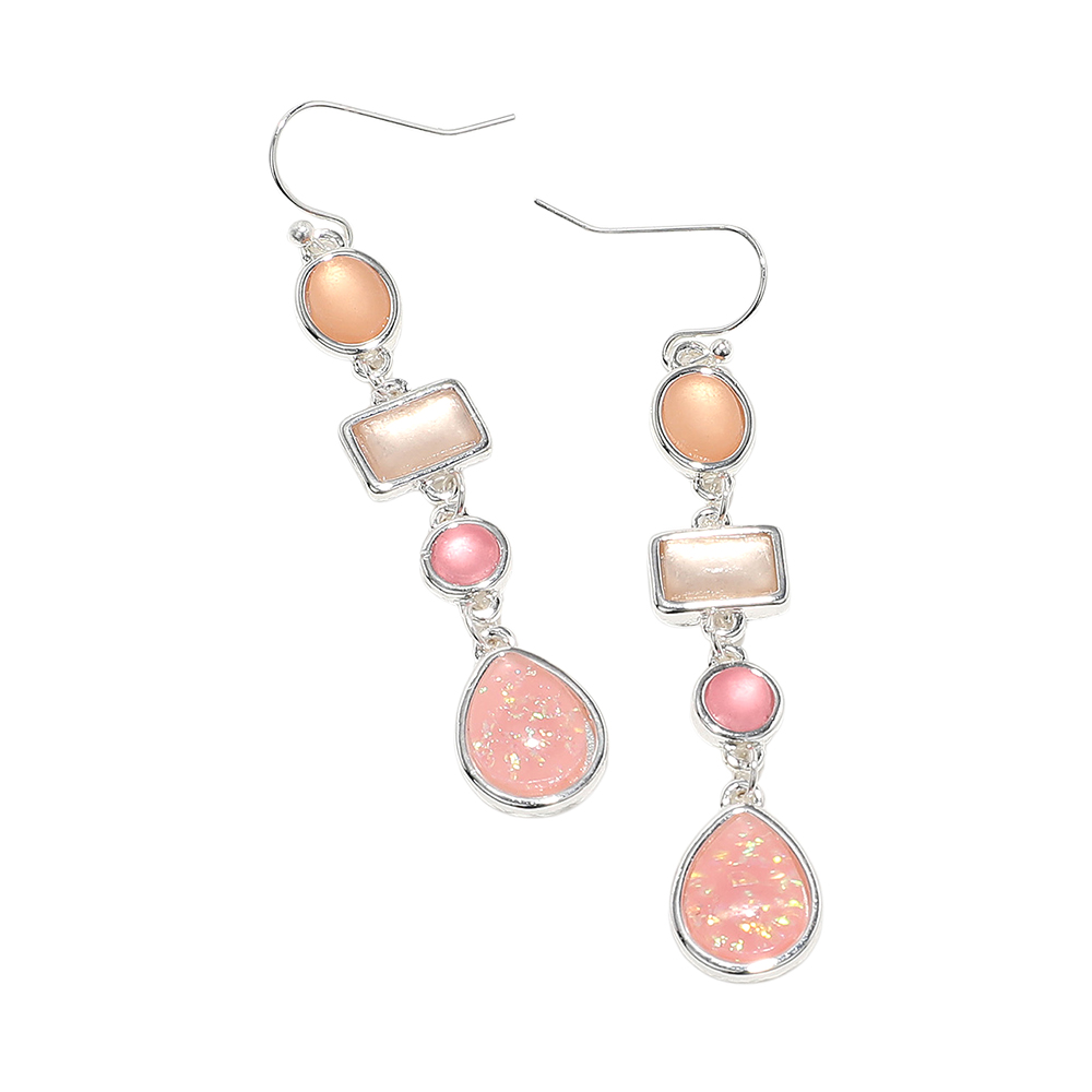 Square Glass Stone Pointed Faceted Beaded Open Circle Dangle Earrings