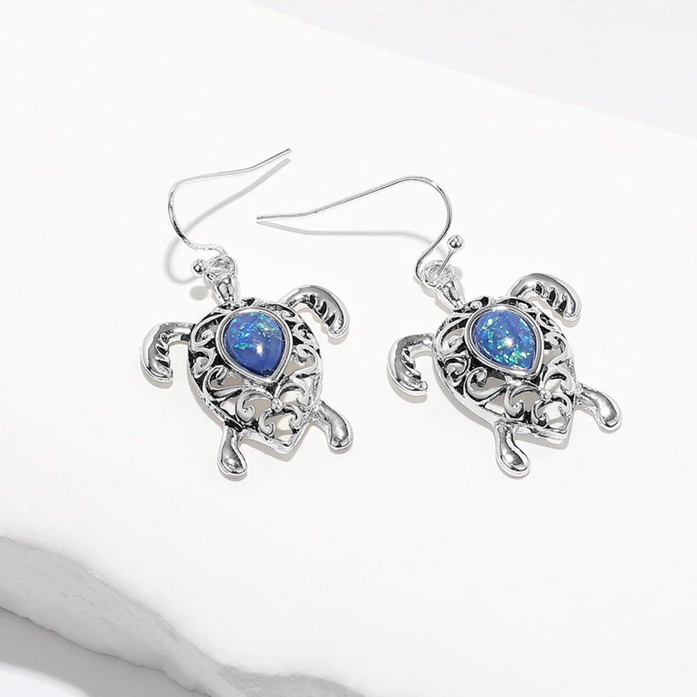 Sea Glass Pointed Metal Turtle Dangle Earrings