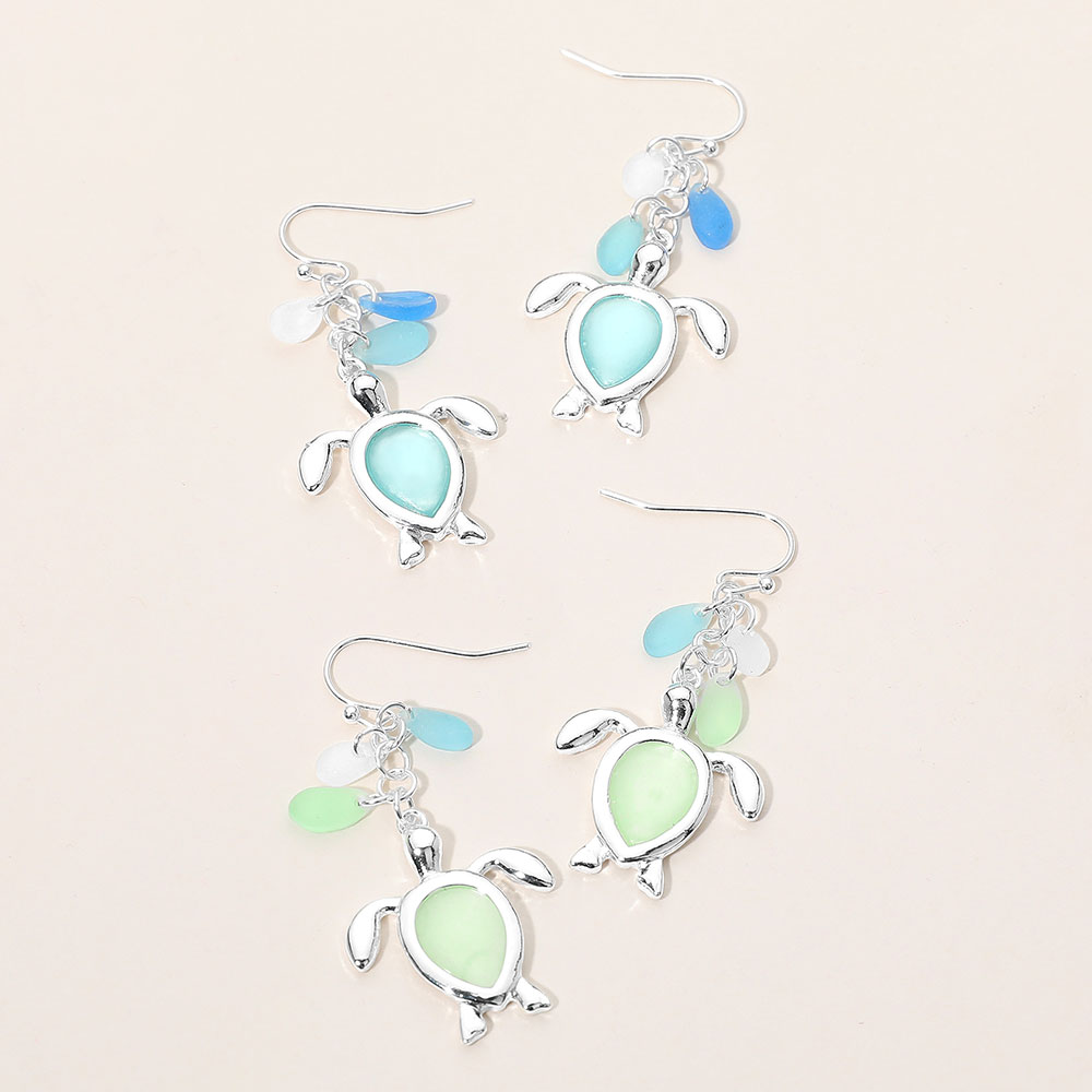 Details • Size : 0.9" X 1.75" • Fish Hook Back • Sea turtle dangle earrings with a charming ocean themed design that adds playful movement and visual interest. Perfect for beach boutiques, resort shops, gift stores, and summer themed collections, these earrings appeal to customers seeking nature inspired and coastal style accessories. • Lead and Nickel Compliant