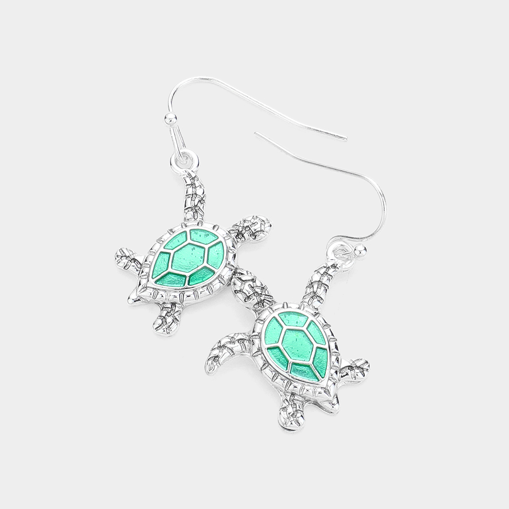 Turquoise Stone Center Vintage Metal Cross Dangle Earrings