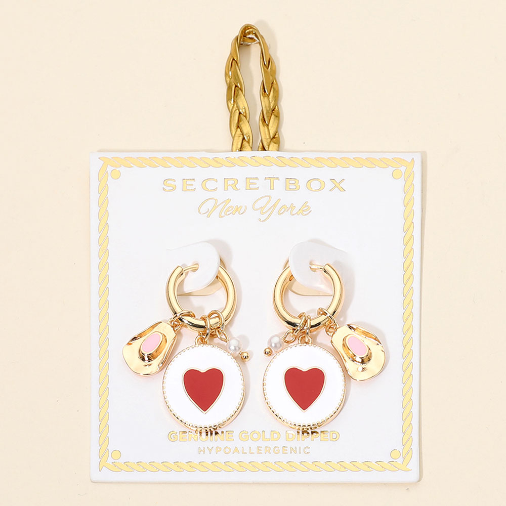 Details • Size : 0.8" X 1.5" • Huggie Back • Playful heart charm hoop earrings designed with layered details for a chic, modern look. Lightweight and easy to wear, these statement hoops add personality to everyday outfits and special occasions alike, making them a versatile accessory for trendy collections and gift-ready jewelry displays. • Gold Dipped • Hypoallergenic